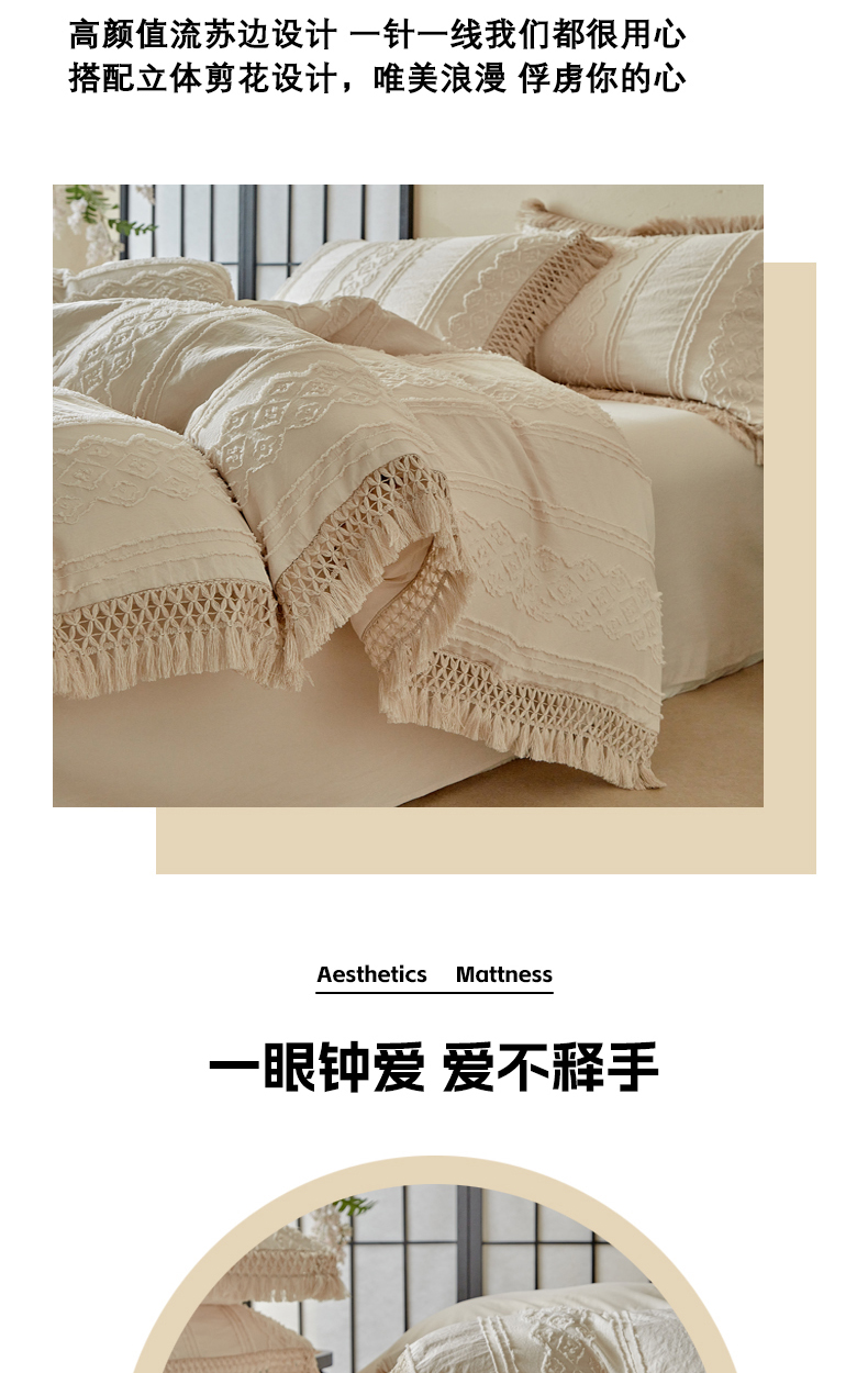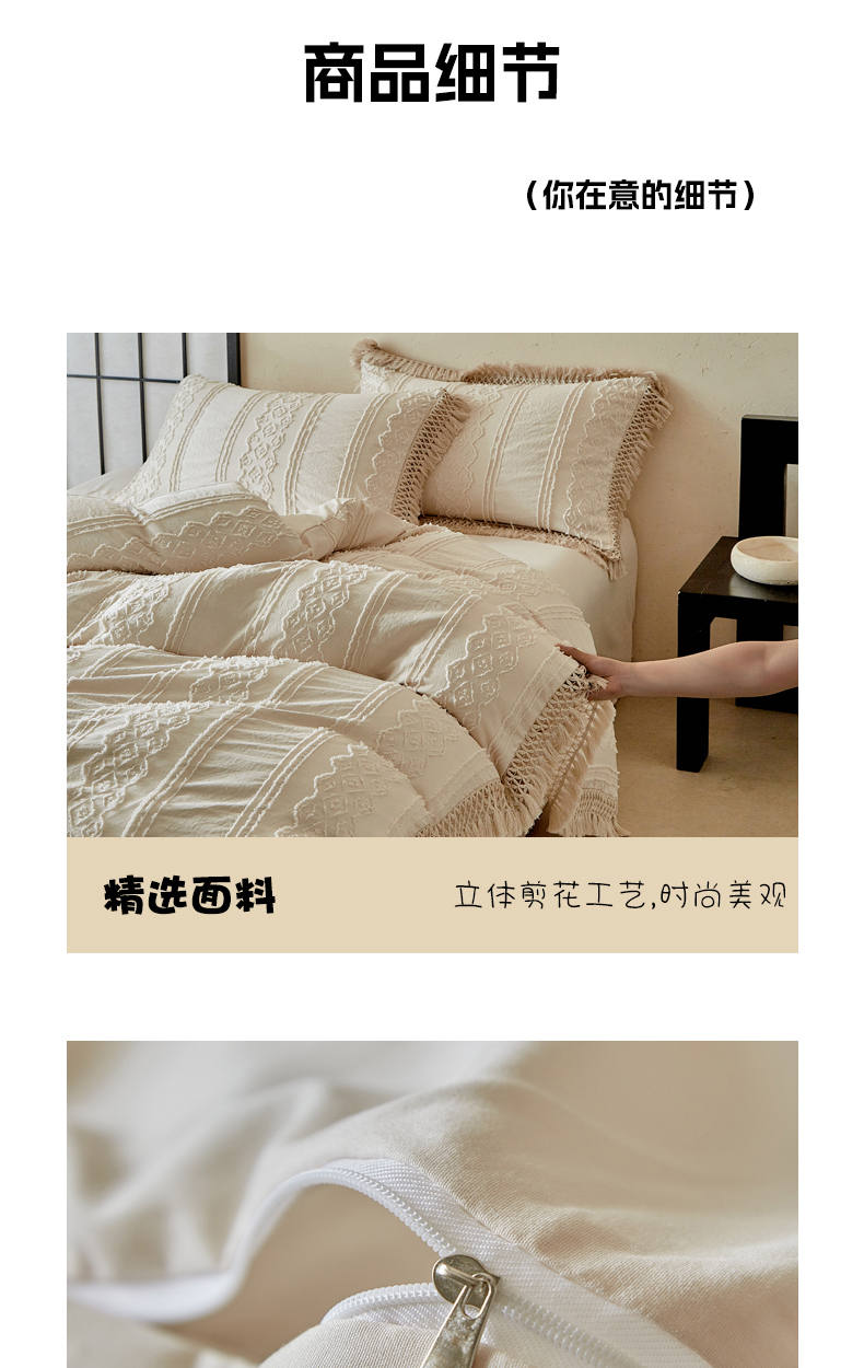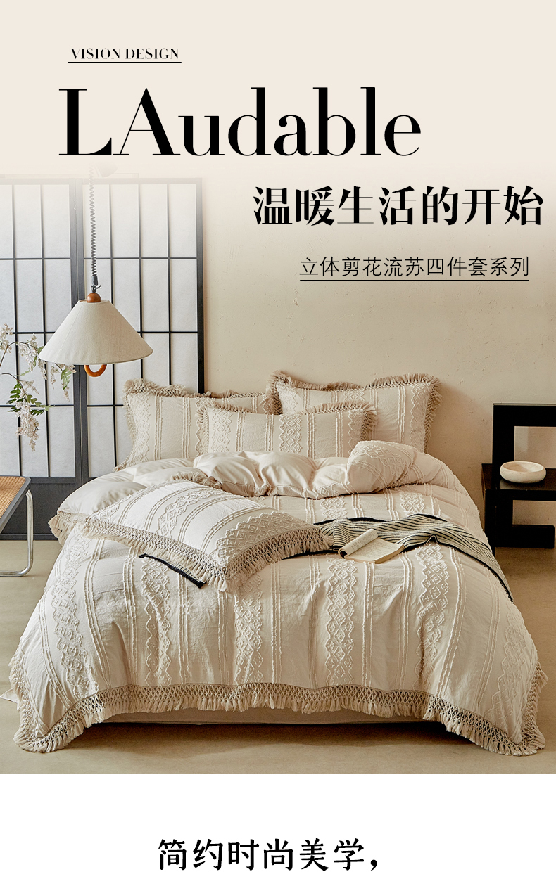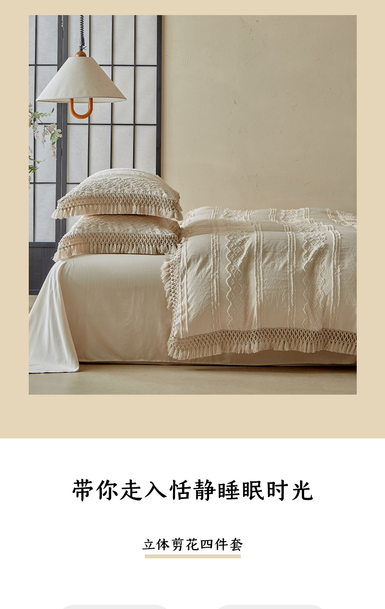 当前位置: 91家纺网 > 商品网购 > 床品套件 > 四件套 > 其它四件套 > 缘生活 2025新款立体剪花流苏四件套 四季通用-新增花型 剪花巴洛克 流苏+卡其