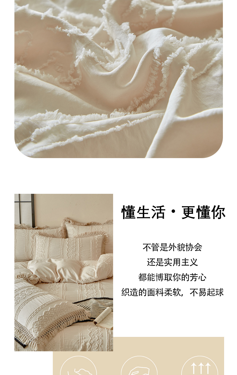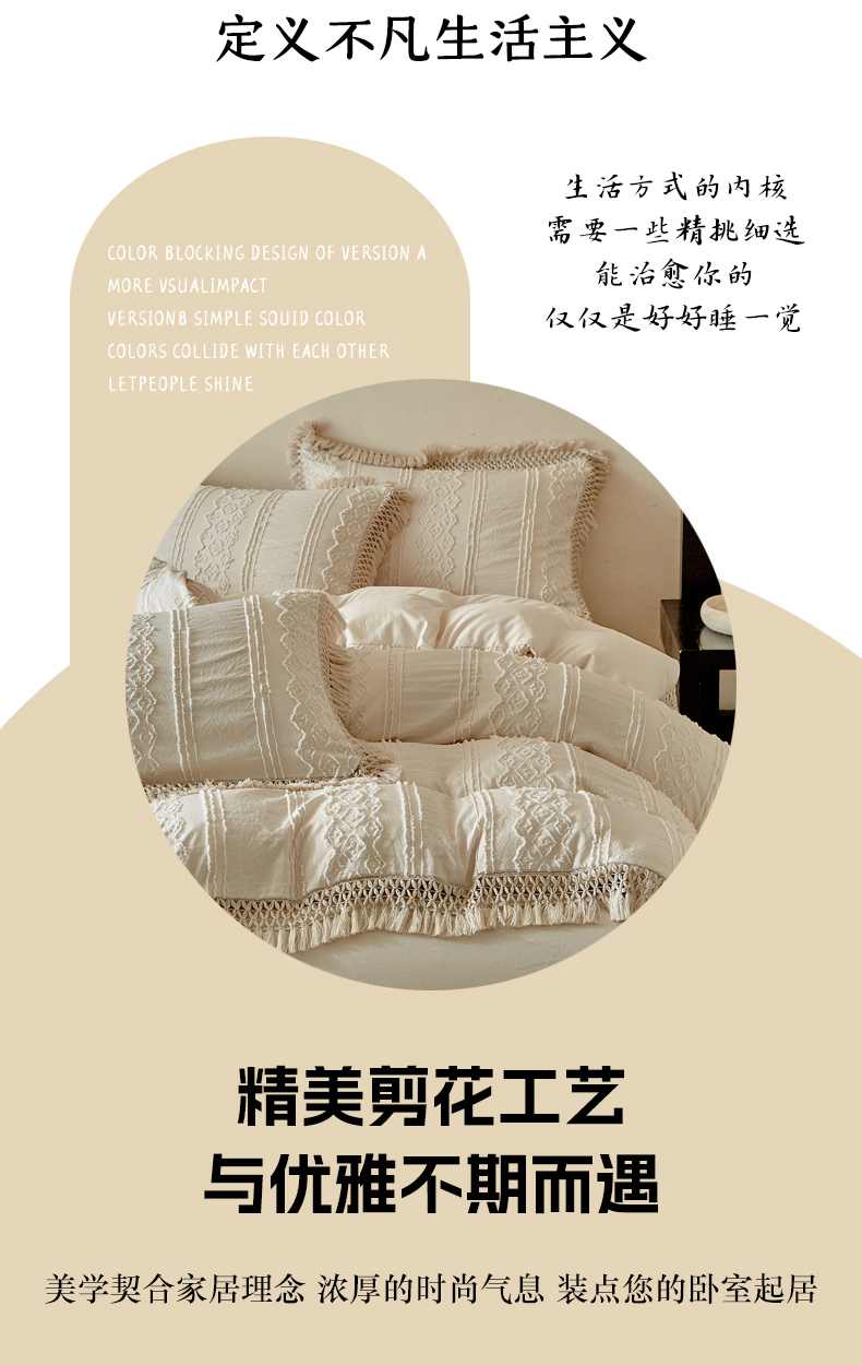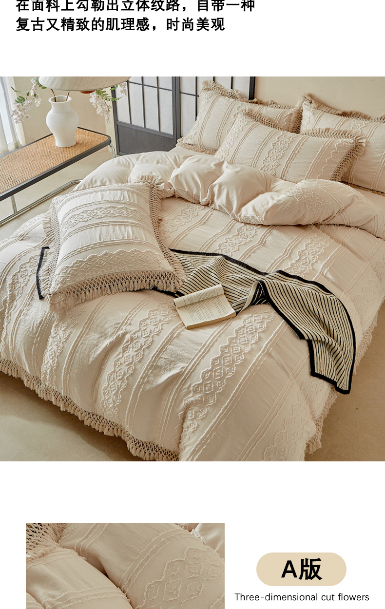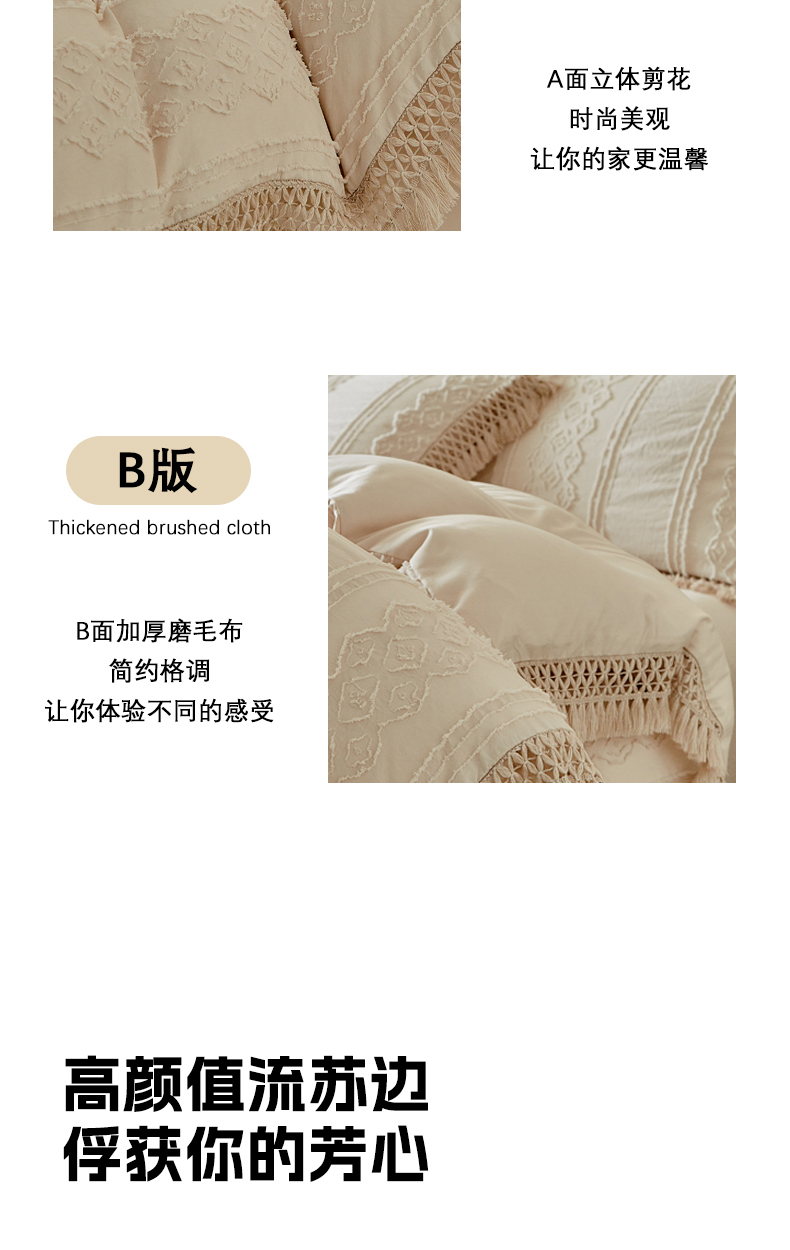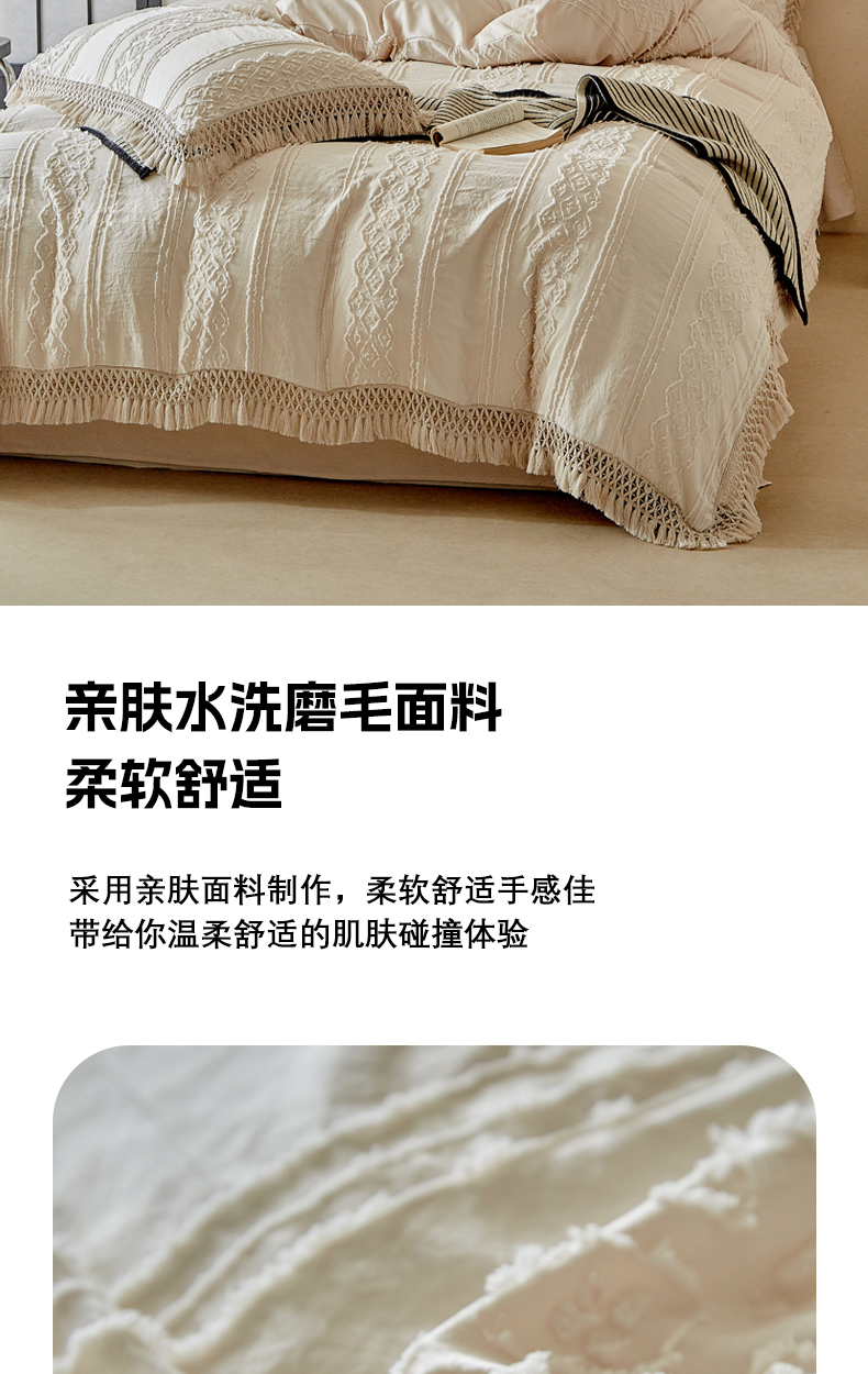 当前位置: 91家纺网 > 商品网购 > 床品套件 > 四件套 > 其它四件套 > 缘生活 2025新款立体剪花流苏四件套 四季通用-新增花型 剪花巴洛克 流苏+卡其