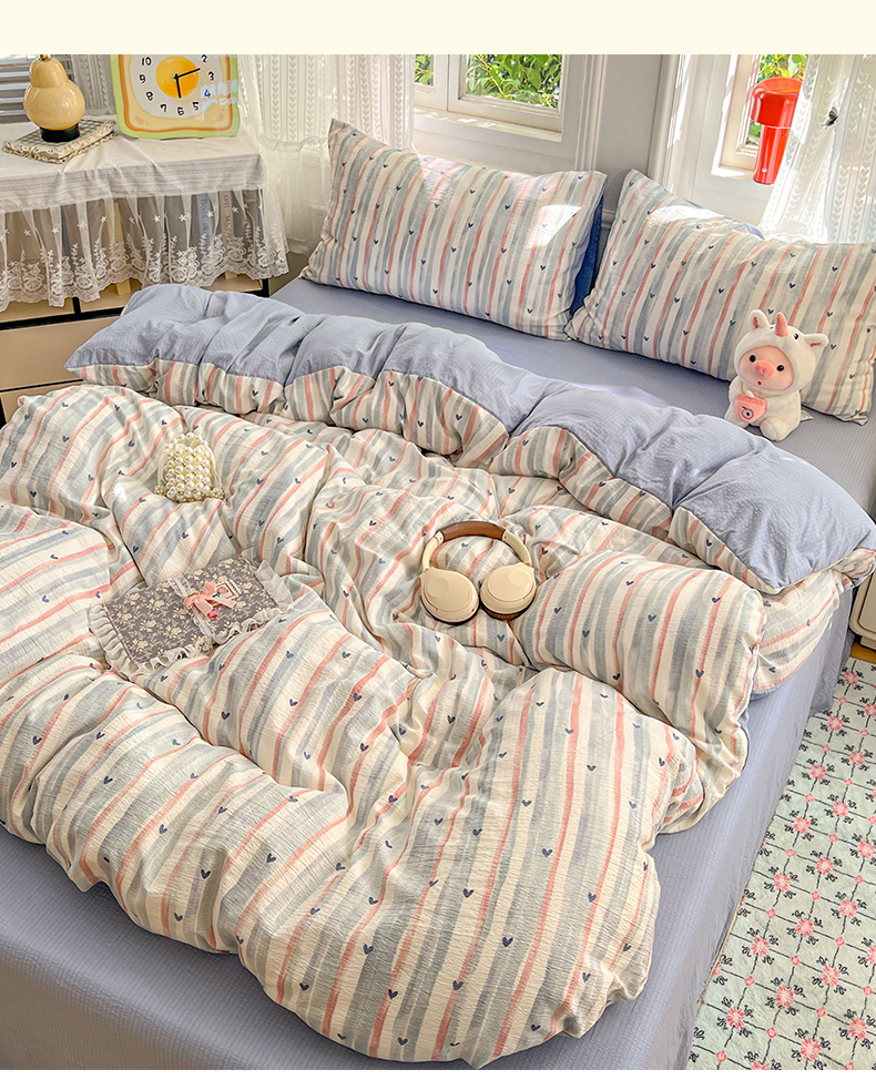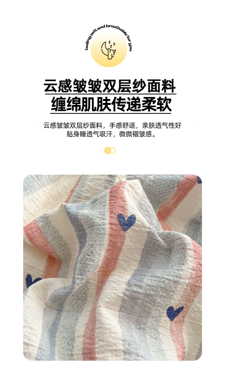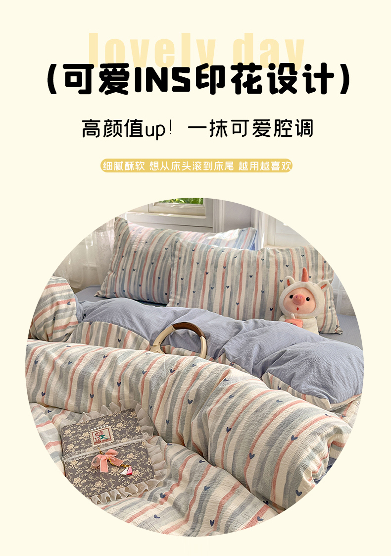 当前位置: 91家纺网 > 商品网购 > 床品套件 > 四件套 > 双层纱四件套 > 优佳优品 2025新款高克重云感双层纱印花四件套 彩条心梦