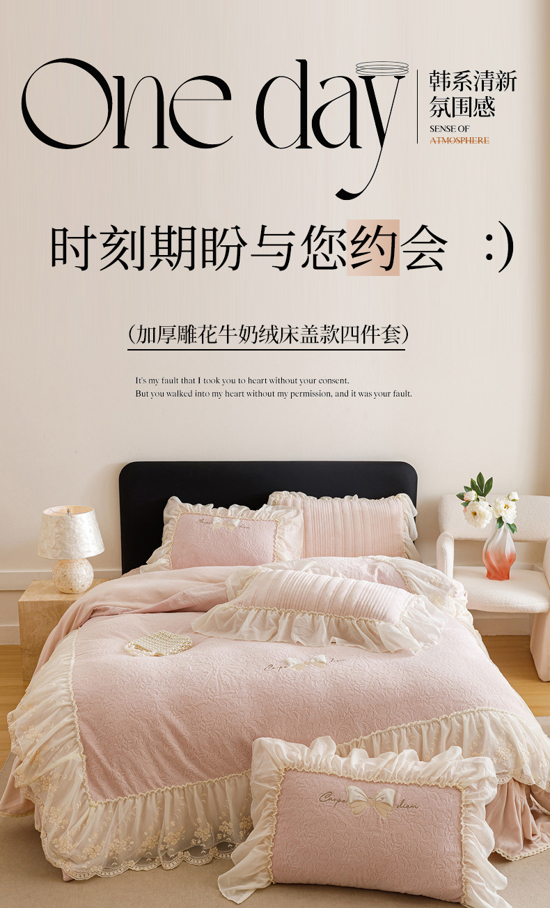 当前位置: 91家纺网 > 商品网购 > 床品套件 > 四件套 > 牛奶绒四件套 > (总)菊上家纺 2025新款雕花绒牛奶绒夹棉床盖款四件套-蝴蝶仙子