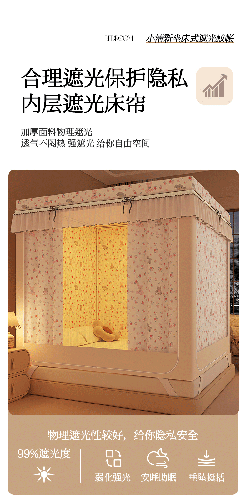 • 91家纺网 家纺一手货源 找家纺 艾晶美家纺有限公司 2025新款韩版卡通印花坐式蚊帐布帘款 玫瑰小熊