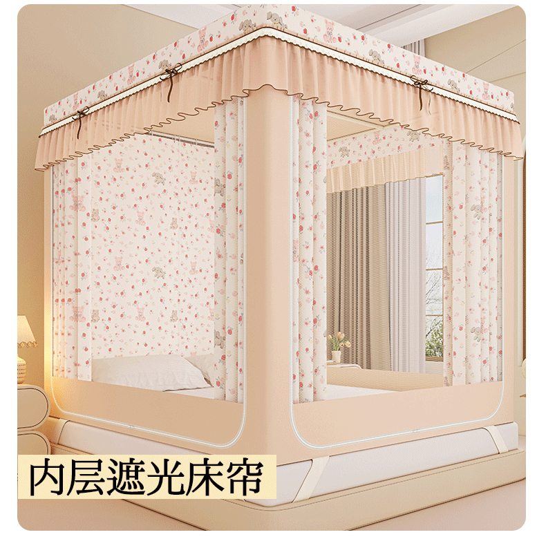 • 91家纺网 家纺一手货源 找家纺 (总)艾晶美家纺有限公司 2025新款新中风双层双杆5面遮光落地宫廷蚊帐,粉枝花影,寒梅映阁,花簇橘裳,兰枝映月,云纱梦境,竹韵绕阁