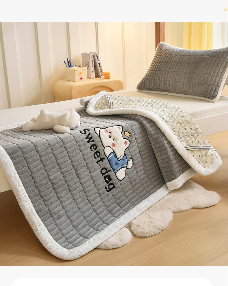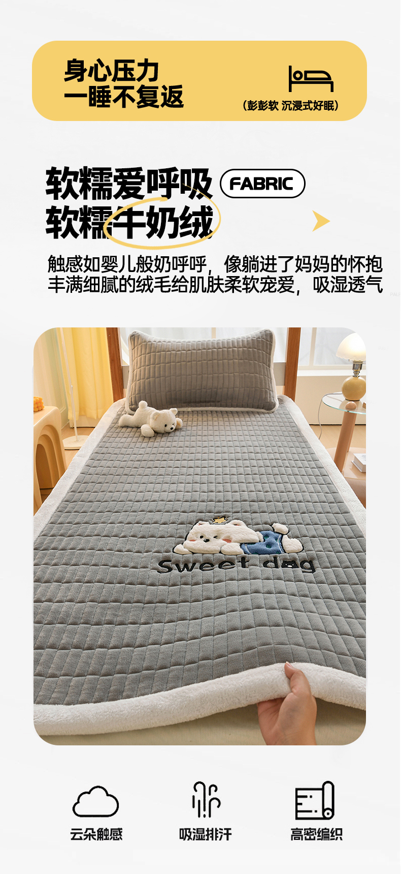(总)悠米悠家 2025新款学生款兔毛绒刺绣夹棉上下铺床褥,小狗-粉色,小狗-绿色,小狗-蓝色,小狗-红色,小狗-卡其色,小狗-深蓝,小狗-灰色,小熊-深蓝,小熊-灰色,小熊-红色,小熊-粉色,小熊-绿色,小熊-卡其色,小熊-蓝色
