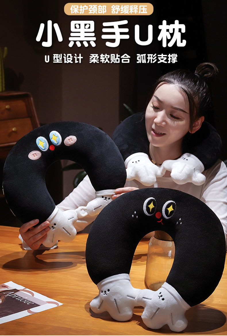 当前位置: 91家纺网 > 商品网购 > 枕头/枕芯/保健枕/颈椎枕 > 枕头枕芯 > 仟亿莱 2025新款水晶绒小黑手u枕 pp棉黑眼俏皮