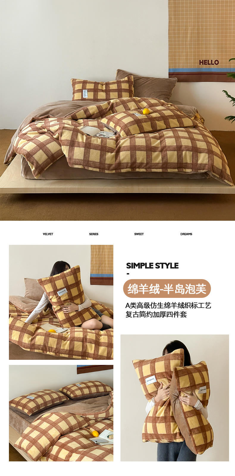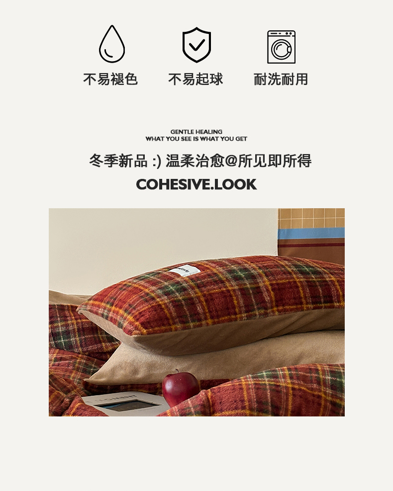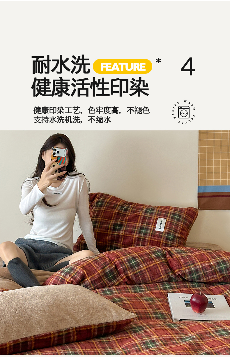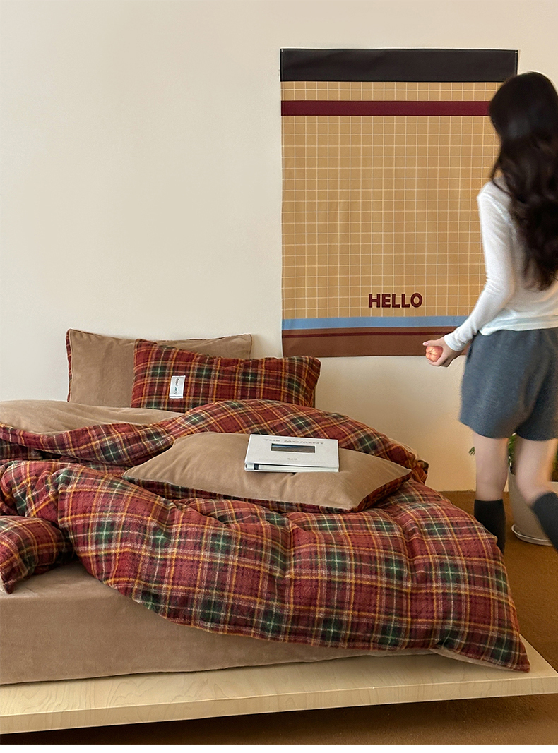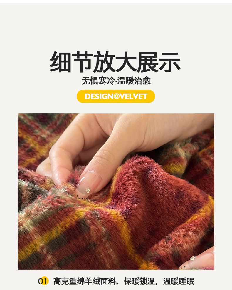 商品名称:桃子家居 2025新款A类高级仿生绵羊绒织标工艺复古简约秋冬限定款加厚牛奶绒系列四件套 绵羊绒-花田红茶