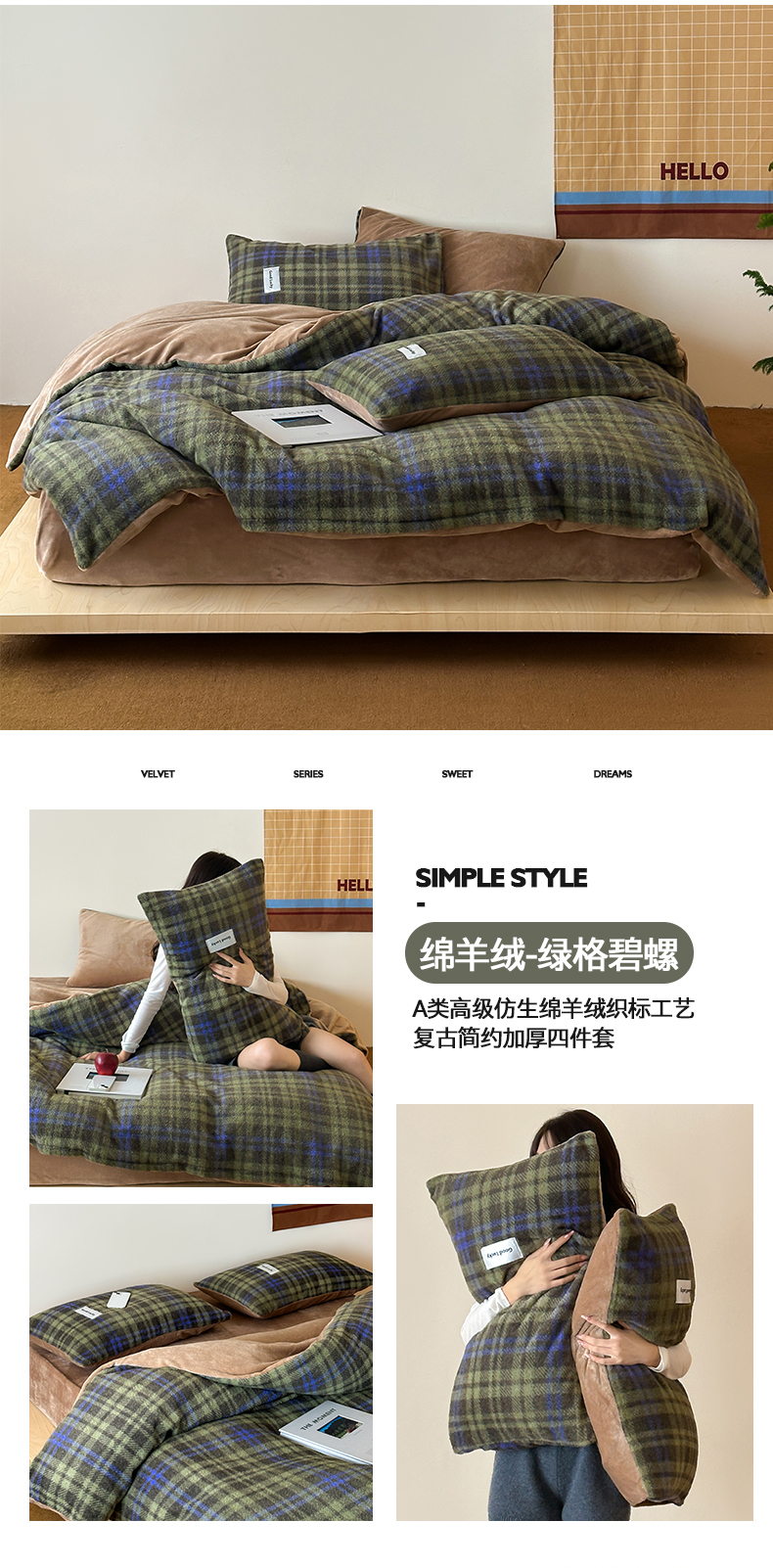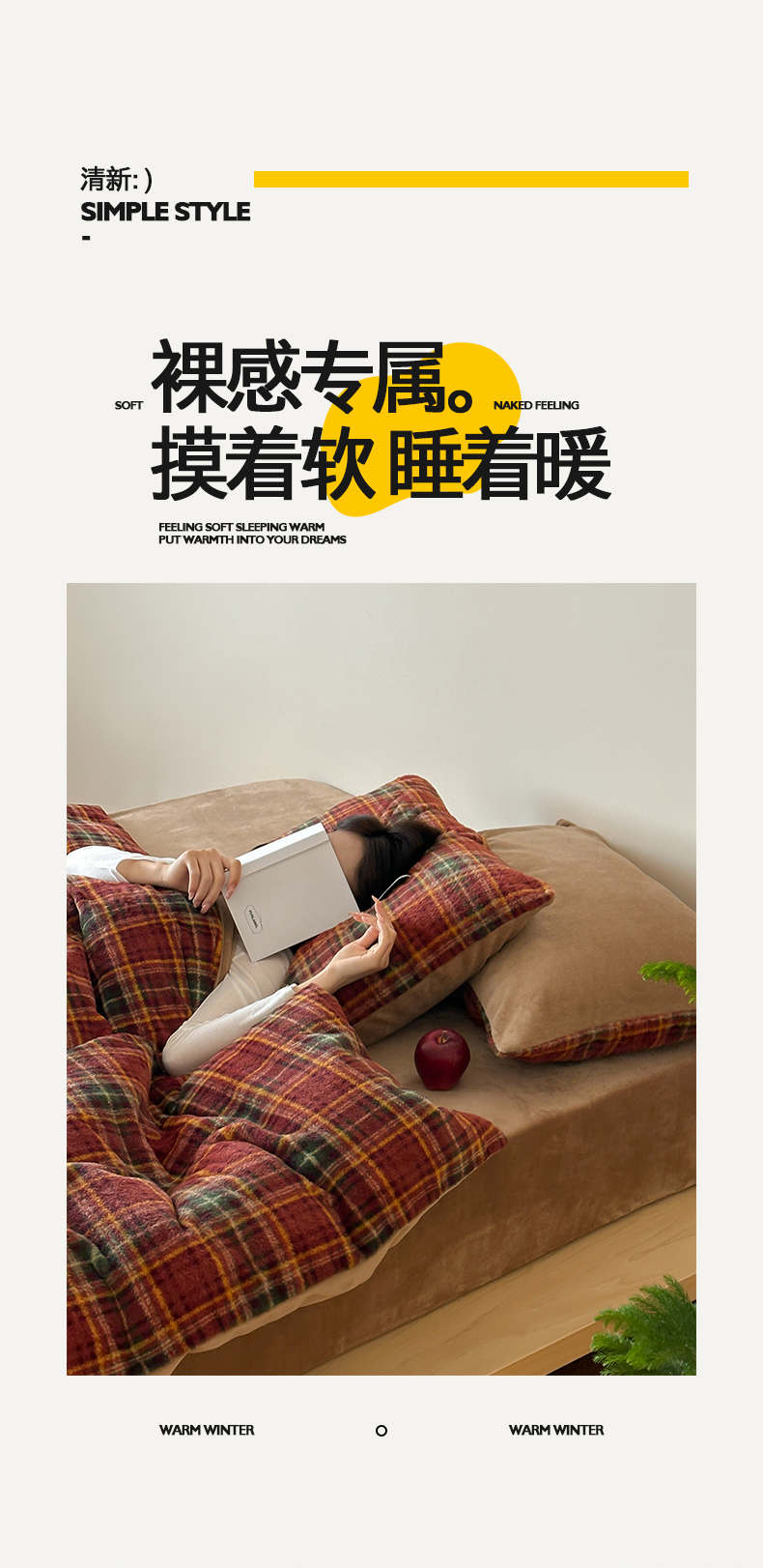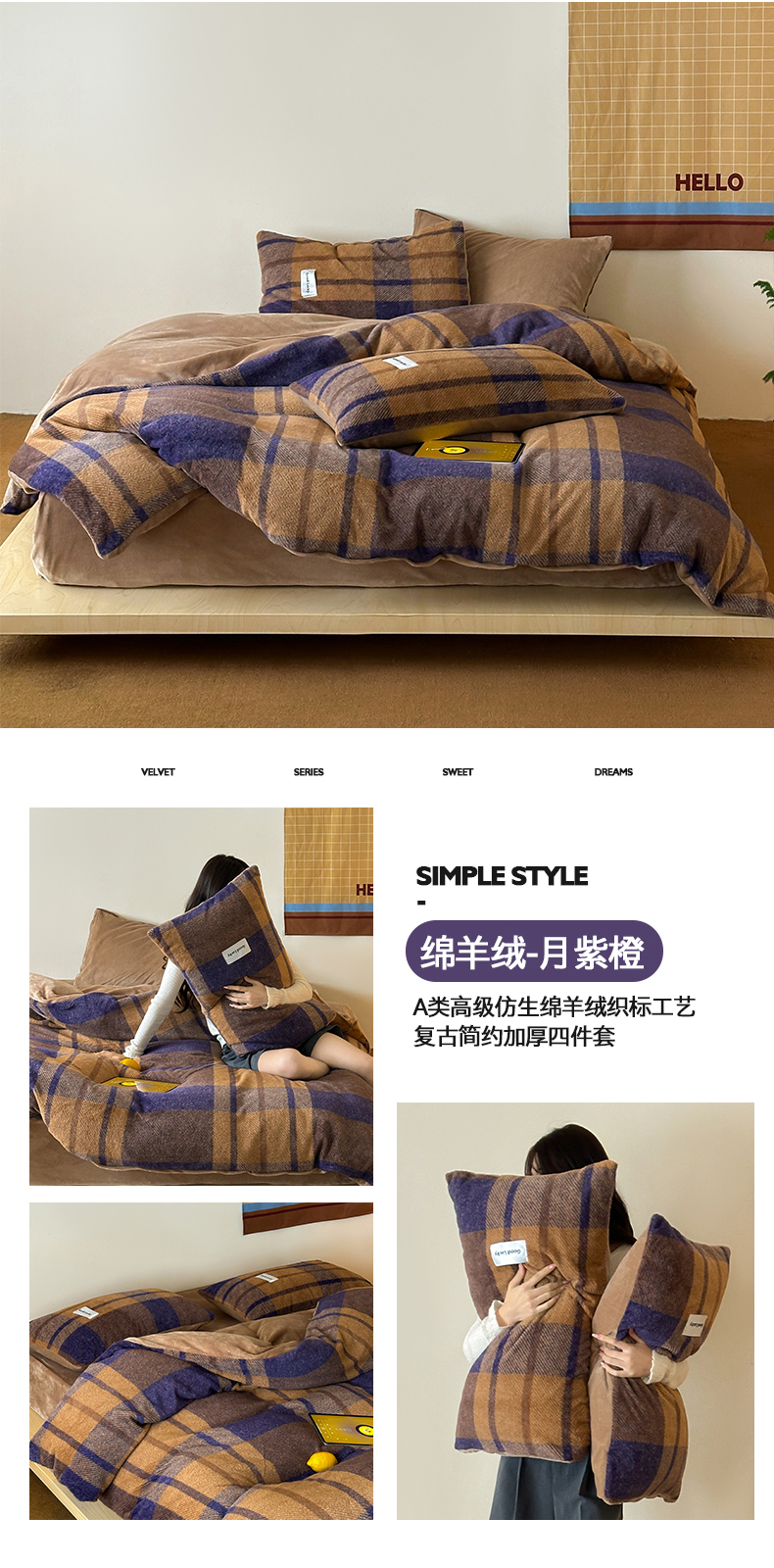 商品名称:桃子家居 2025新款A类高级仿生绵羊绒织标工艺复古简约秋冬限定款加厚牛奶绒系列四件套 绵羊绒-花田红茶
