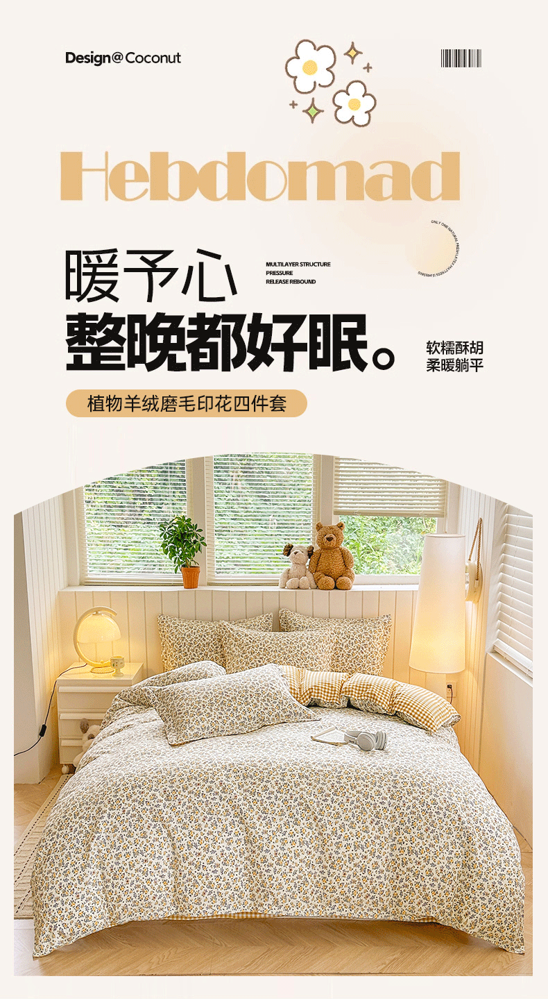 当前位置: 91家纺网 > 商品网购 > 床品套件 > 四件套 > 化纤普通四件套 > 简冠家纺 2025直播爆款北欧风亲肤植物羊绒磨毛四件套 花野仙踪
