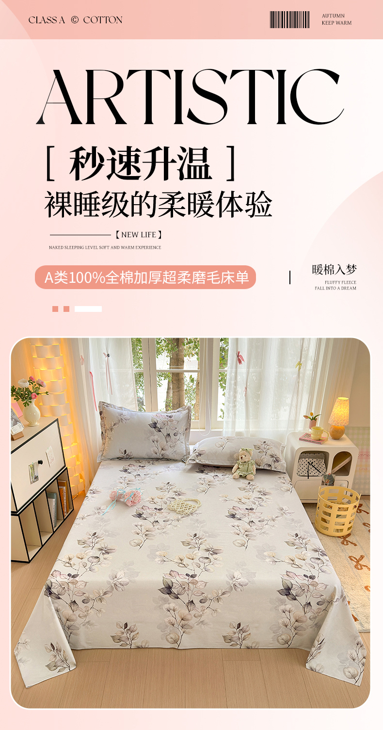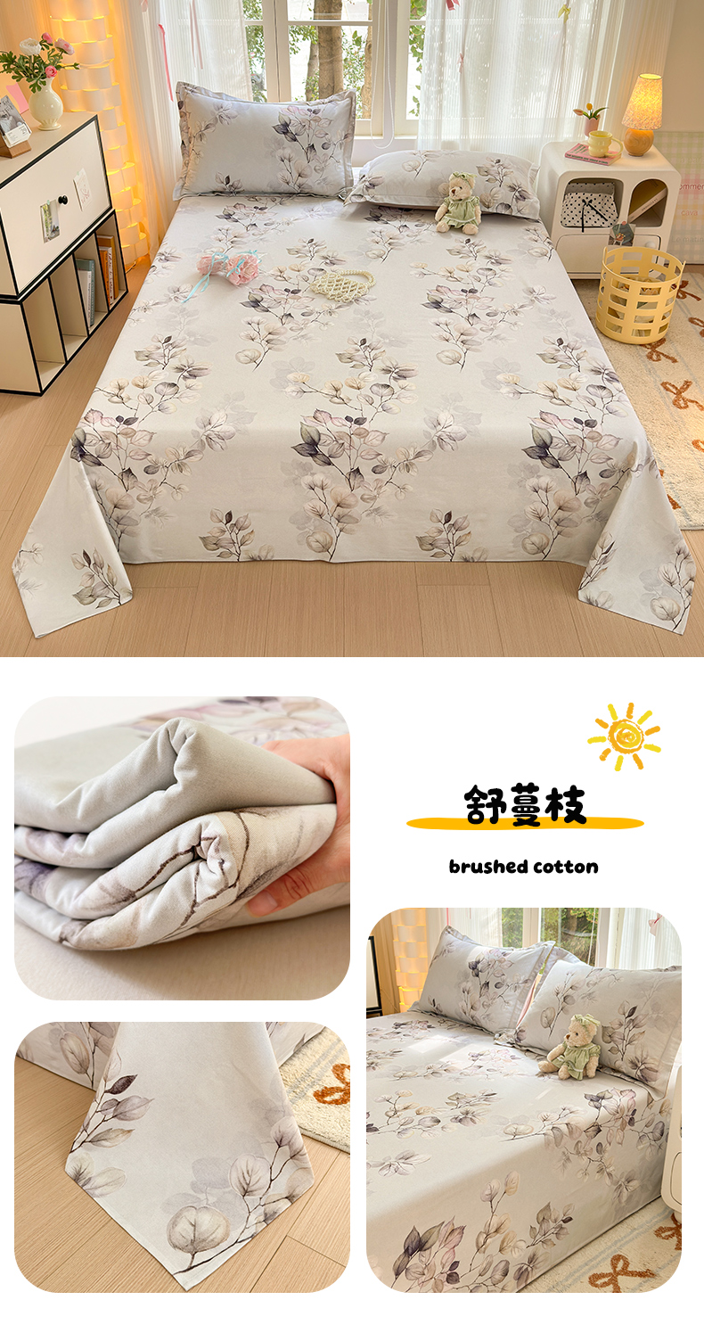 • 91家纺网 家纺一手货源 找家纺 拾物记 2025新款A类全棉纯棉加厚超柔磨毛单床单(提供买家秀质检报告和实验视频) 舒蔓枝