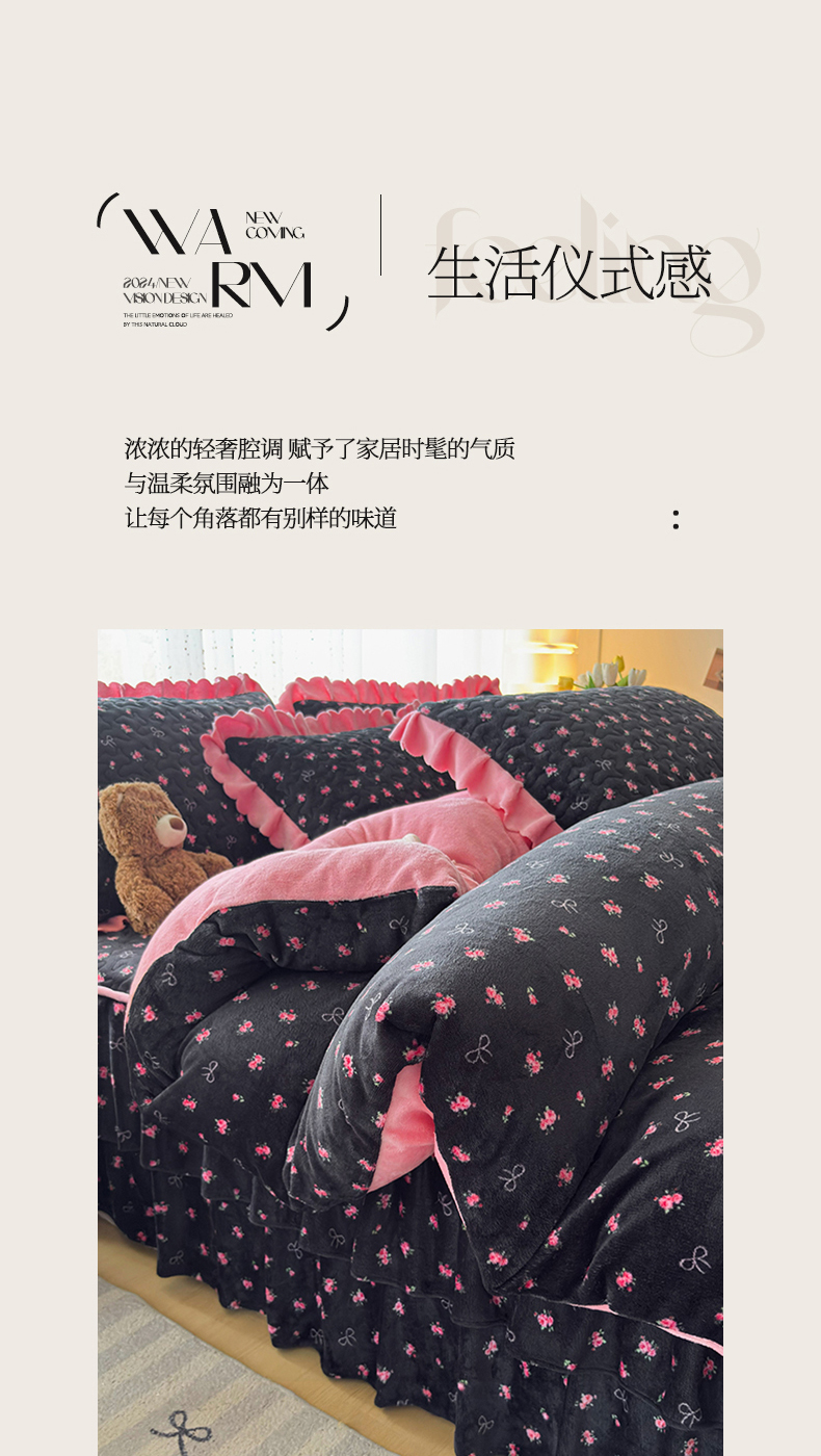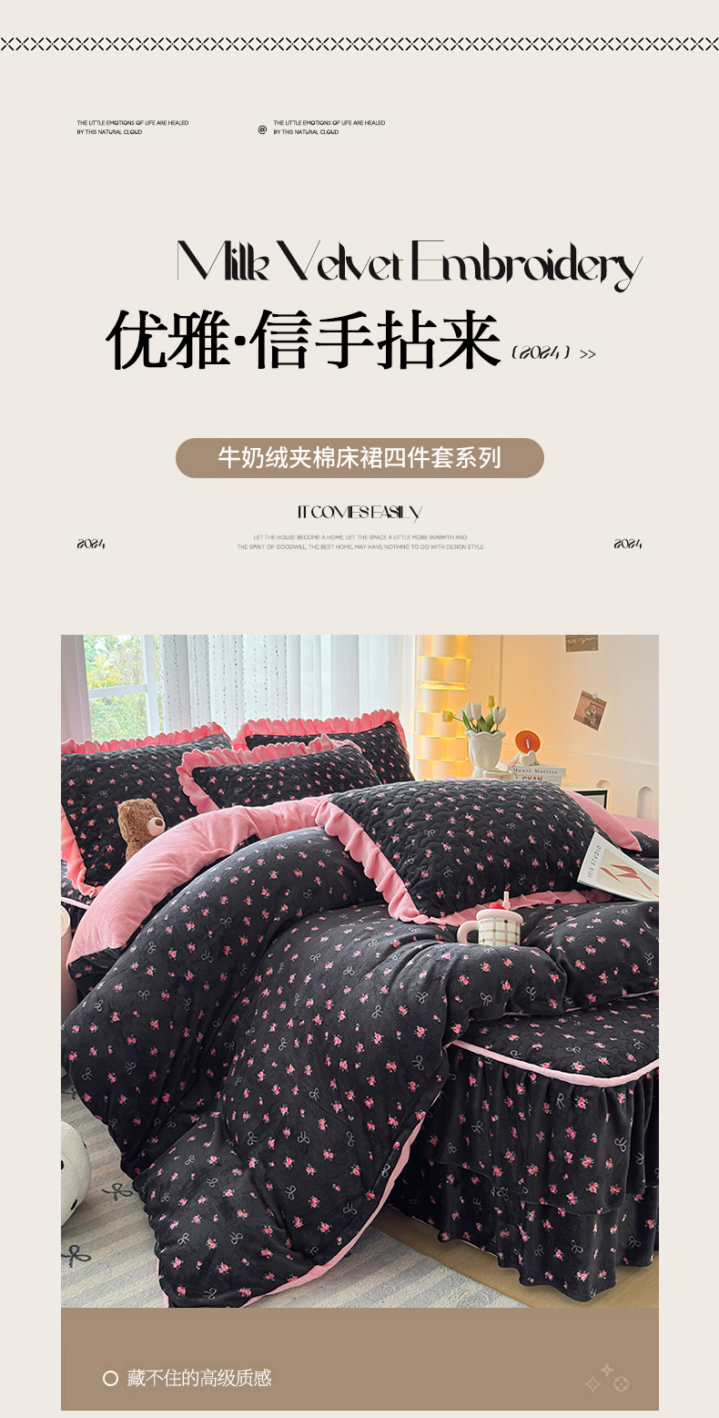 当前位置: 91家纺网 > 商品网购 > 床品套件 > 四件套 > 牛奶绒四件套 > 铠畅家纺 2025新款牛奶绒夹棉床盖床裙四件套 情人结