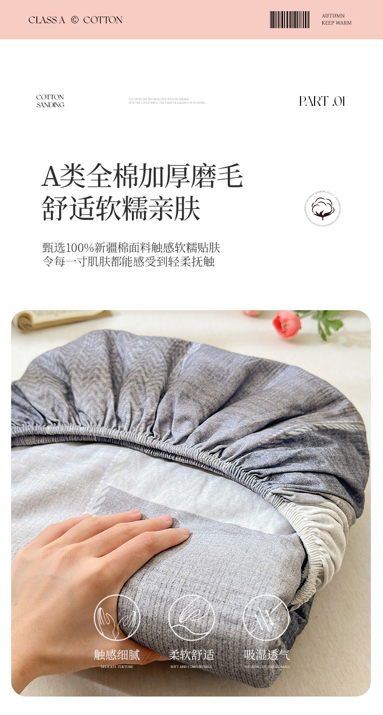 • 91家纺网 家纺一手货源 找家纺 拾物记 2025新款A类全棉纯棉加厚超柔磨毛单床笠(提供买家秀质检报告和实验视频) 轻织漫冬