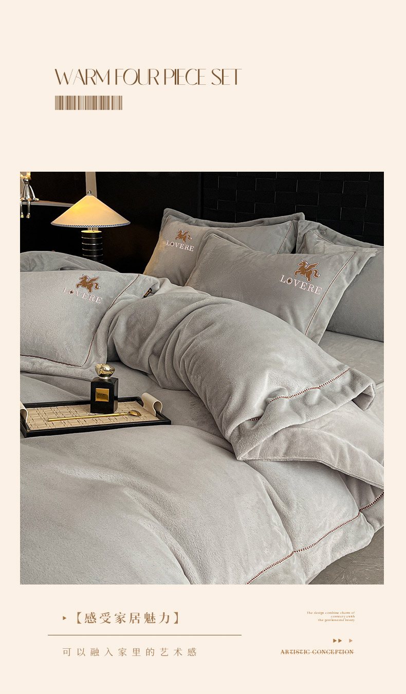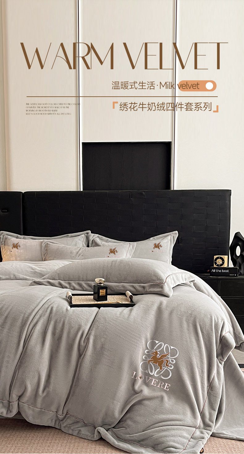 (总)库里梦家纺 2025网红直播热款230克全消光工艺绣花牛奶绒四件套,飞马-卡其,飞马-银灰,飞马-米色,飞马-杏仁黄,飞马-桃花粉,飞马-海洋蓝,飞马-薄荷绿