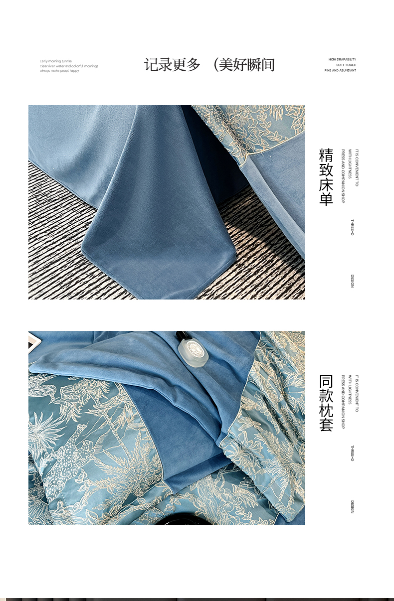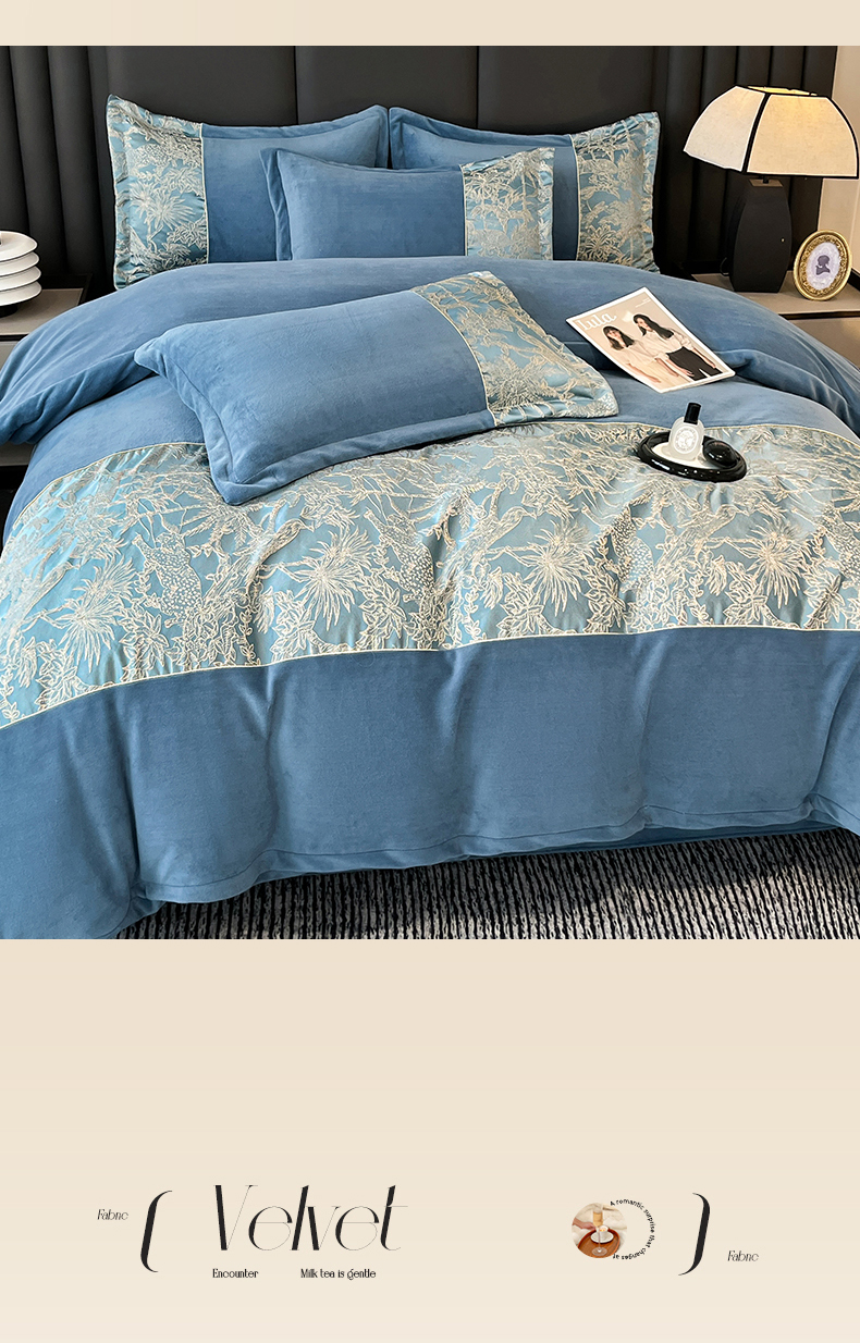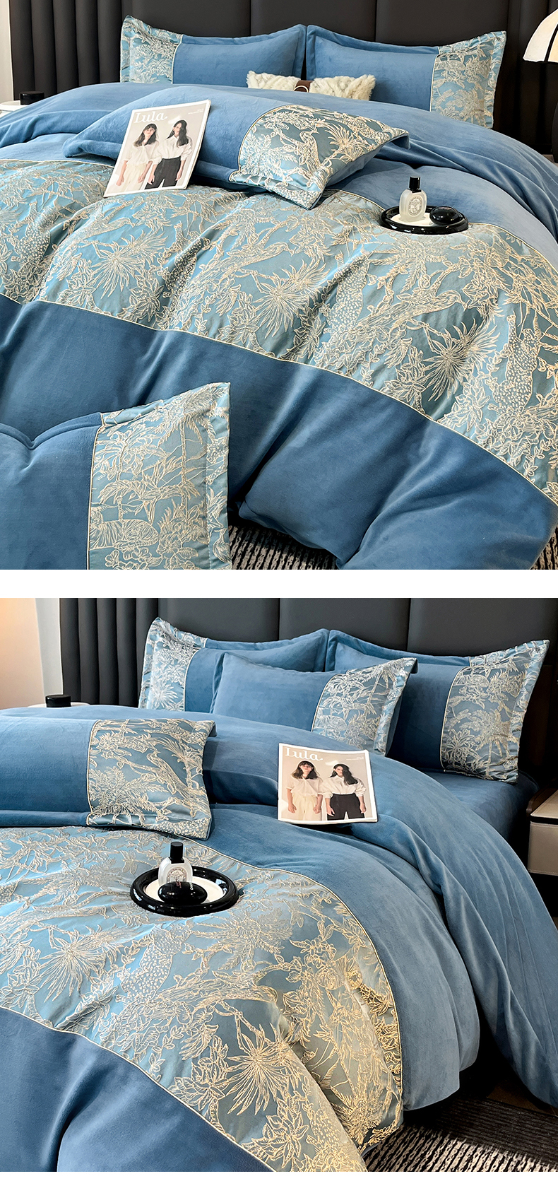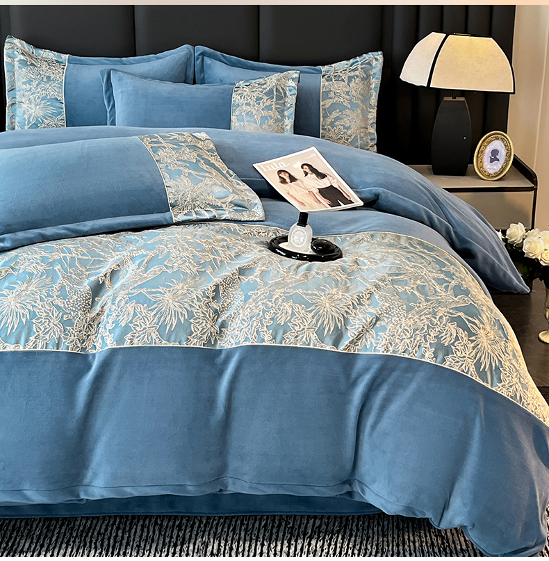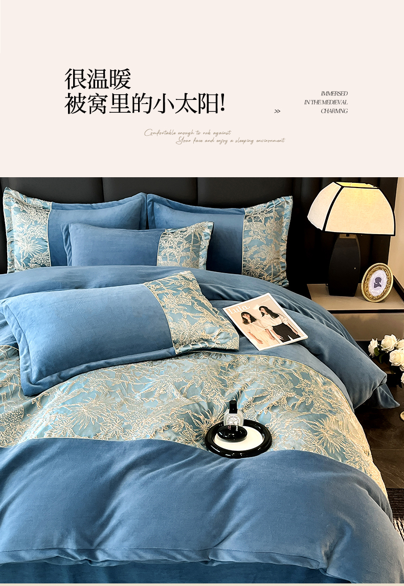 富宁家纺 2025新款立体雕花牛奶绒绣花四件套-洛卡玫瑰系列 洛卡蓝