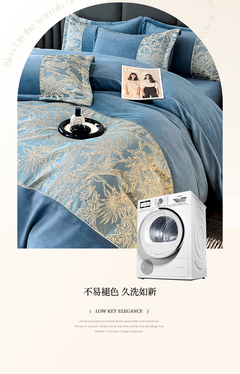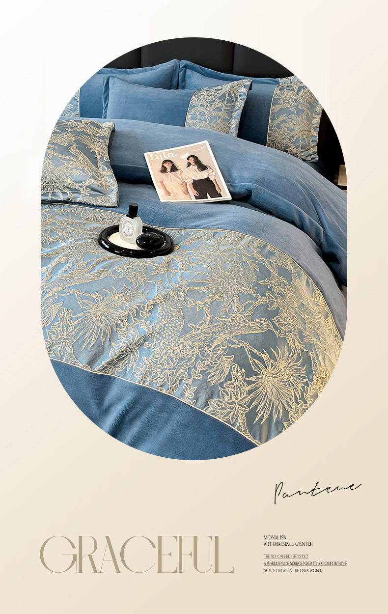 商品名称:富宁家纺 2025新款立体雕花牛奶绒绣花四件套-洛卡玫瑰系列 洛卡蓝