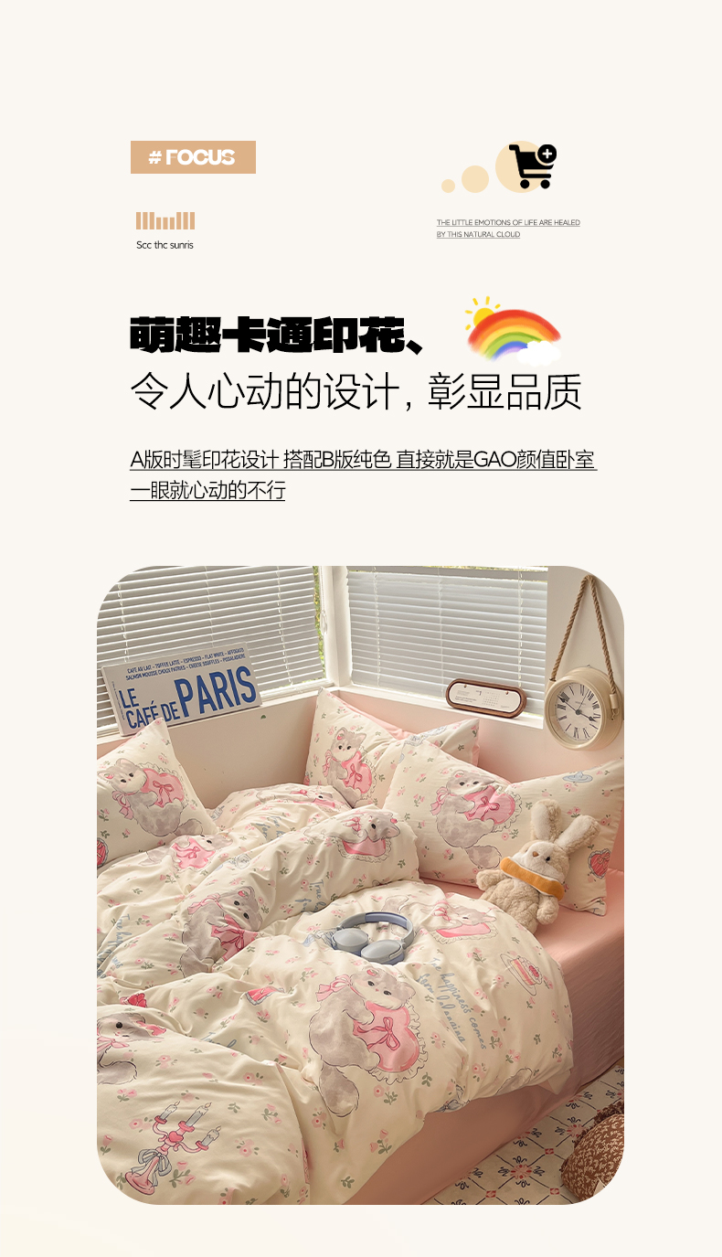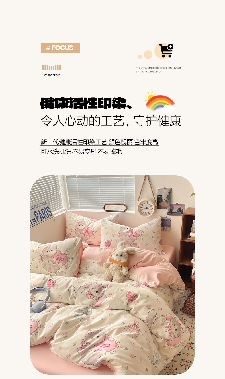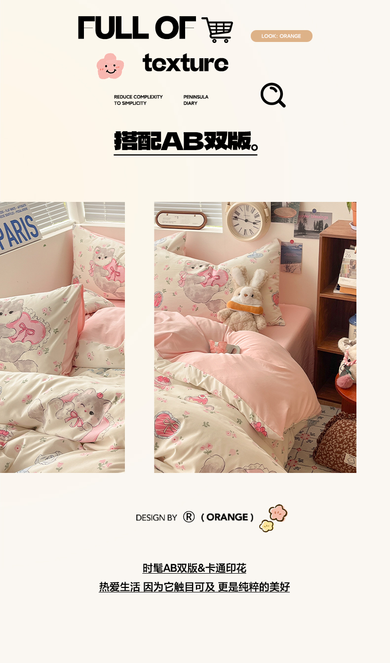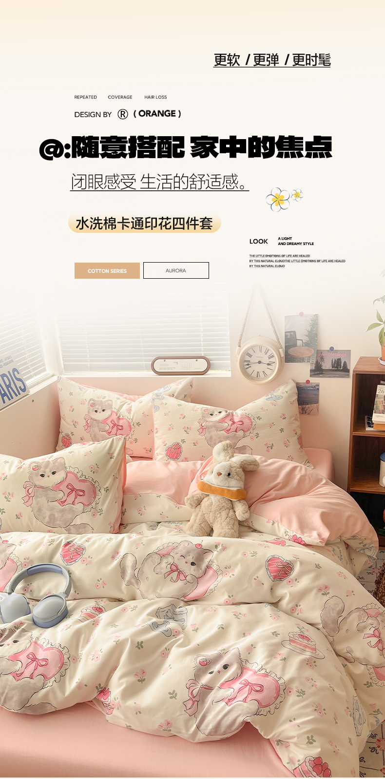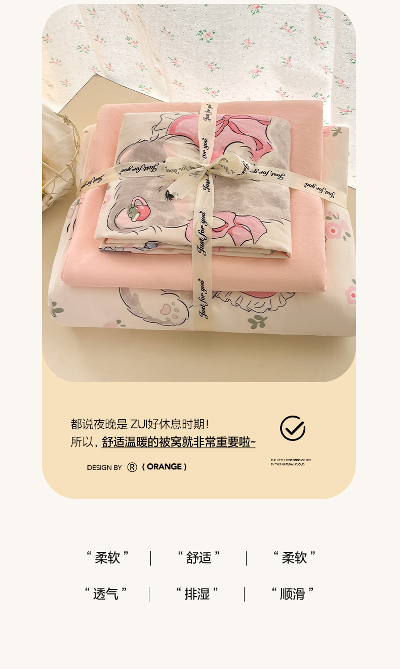 当前位置: 91家纺网 > 商品网购 > 床品套件 > 四件套 > 水洗棉四件套 > 优承佳生活馆 2026新款洛丽塔风水洗印花四件套学生三件套单被套系列 甜心萌物