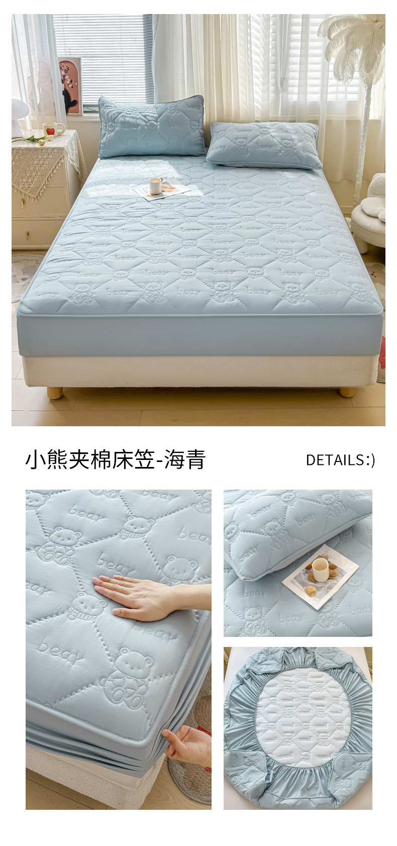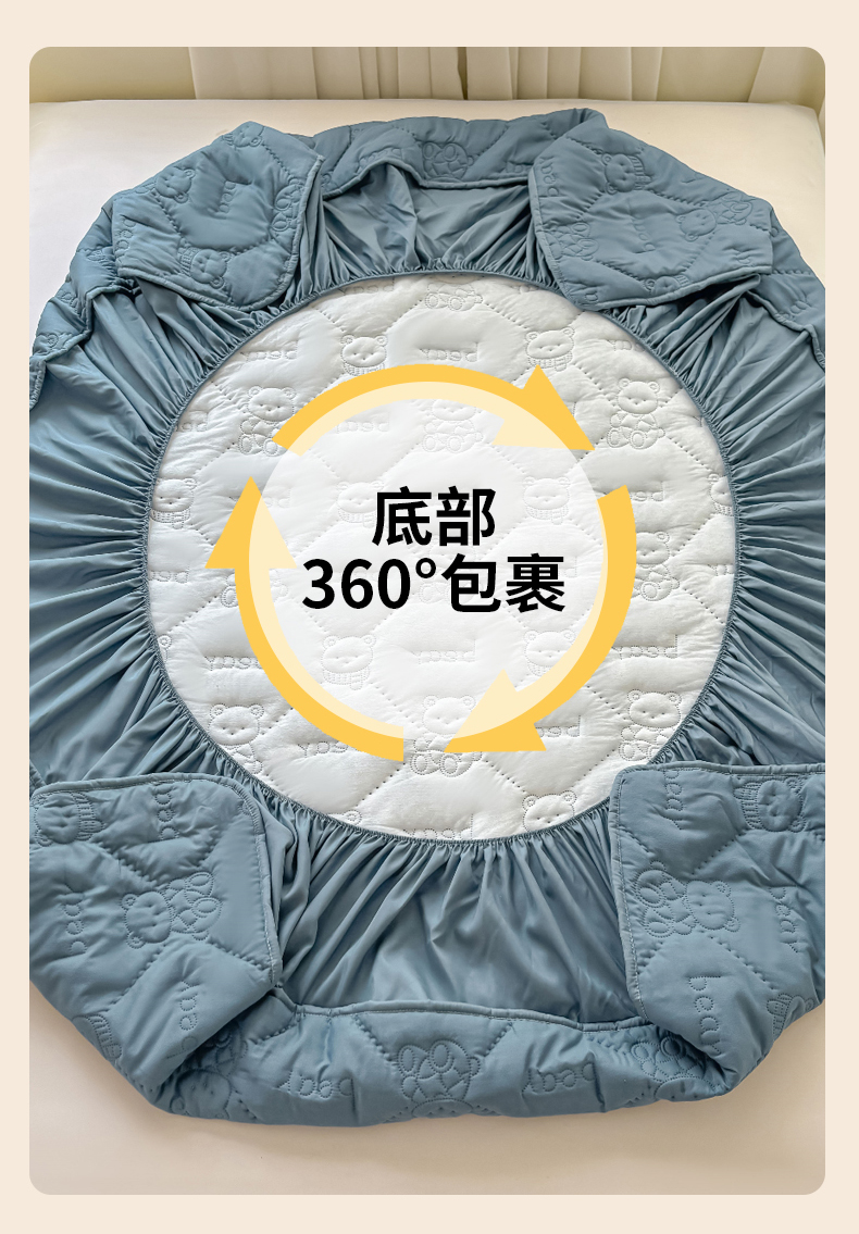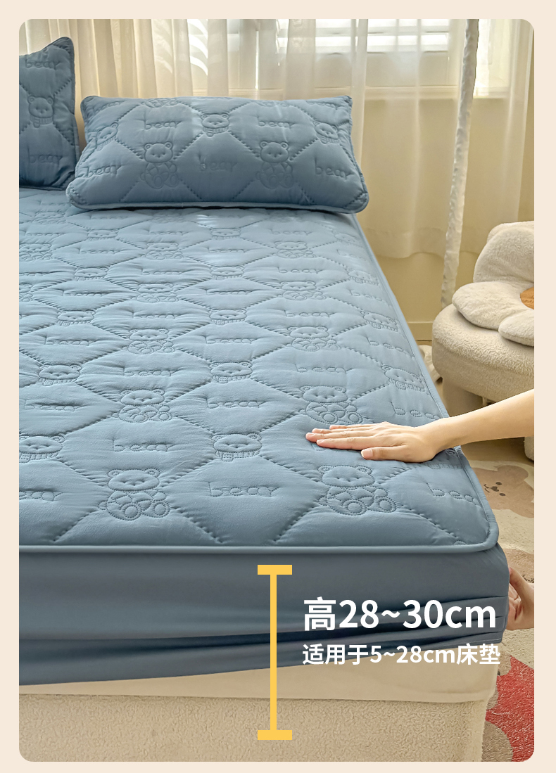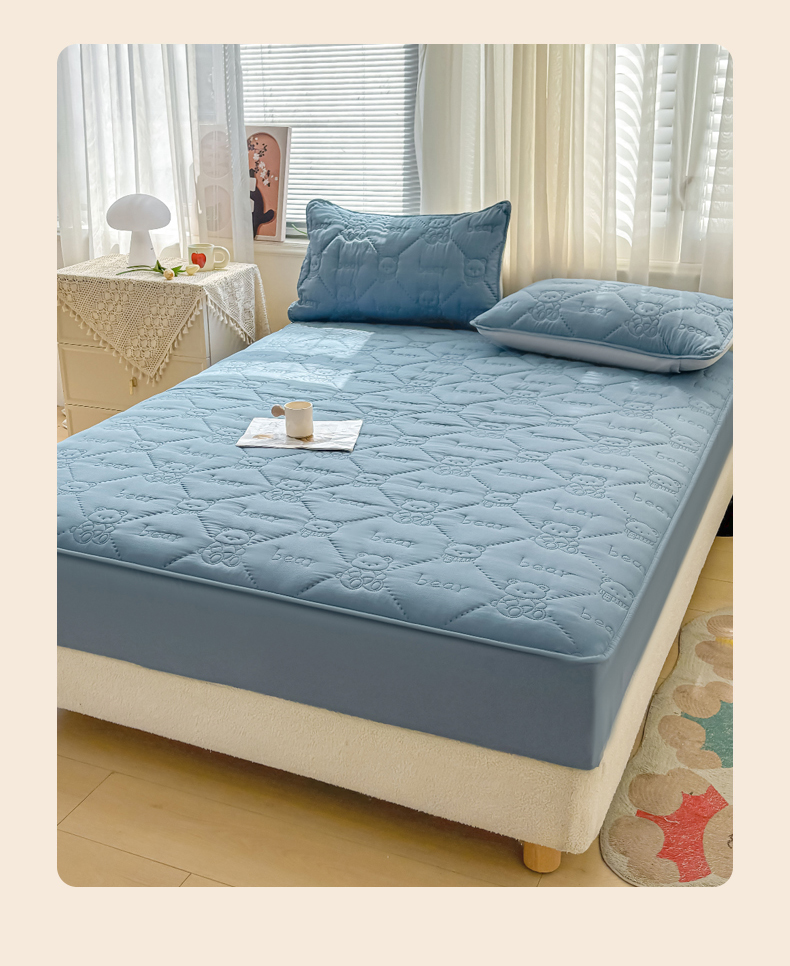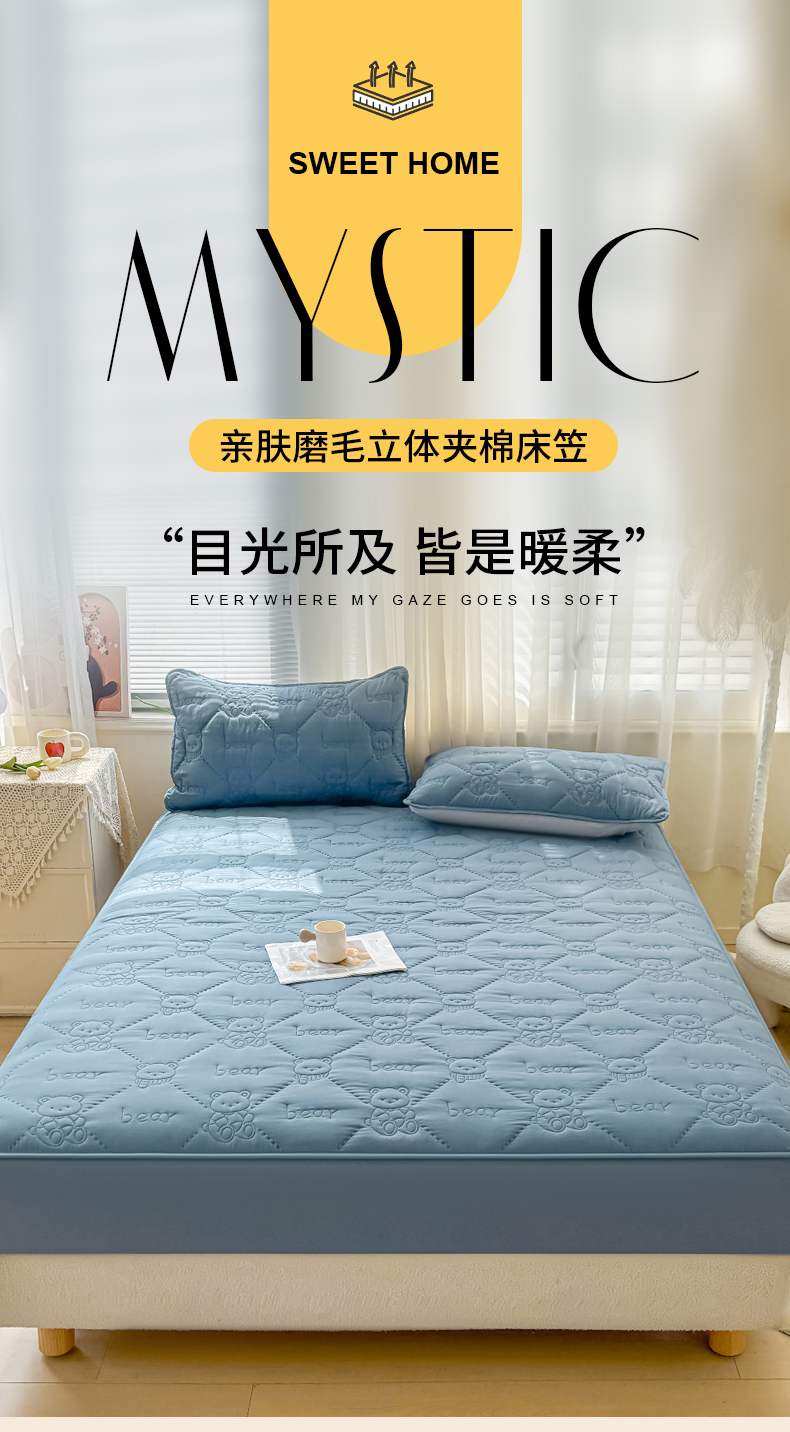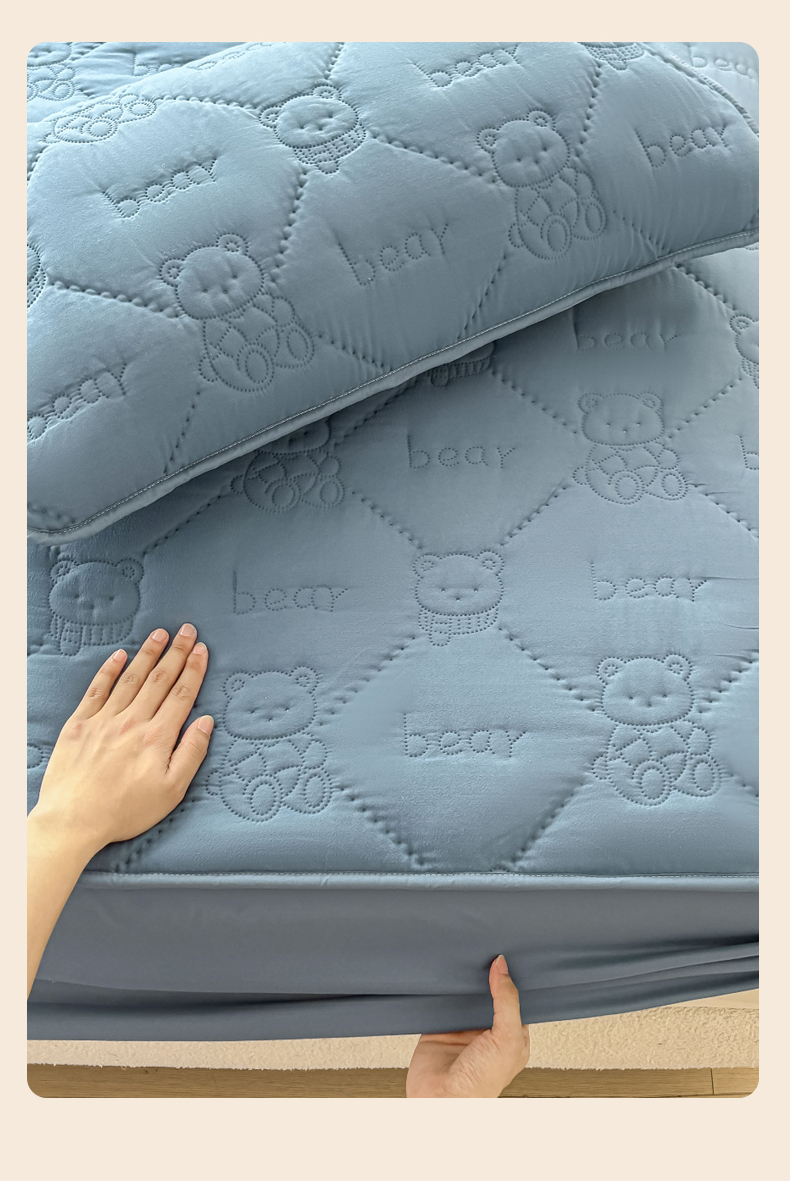 • 91家纺网 家纺一手货源 找家纺 LIFE.丽芙 2025新款磨毛单件超声波小熊夹棉床笠三件套 小熊夹棉床笠-宾利蓝