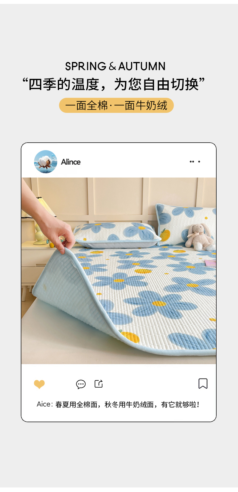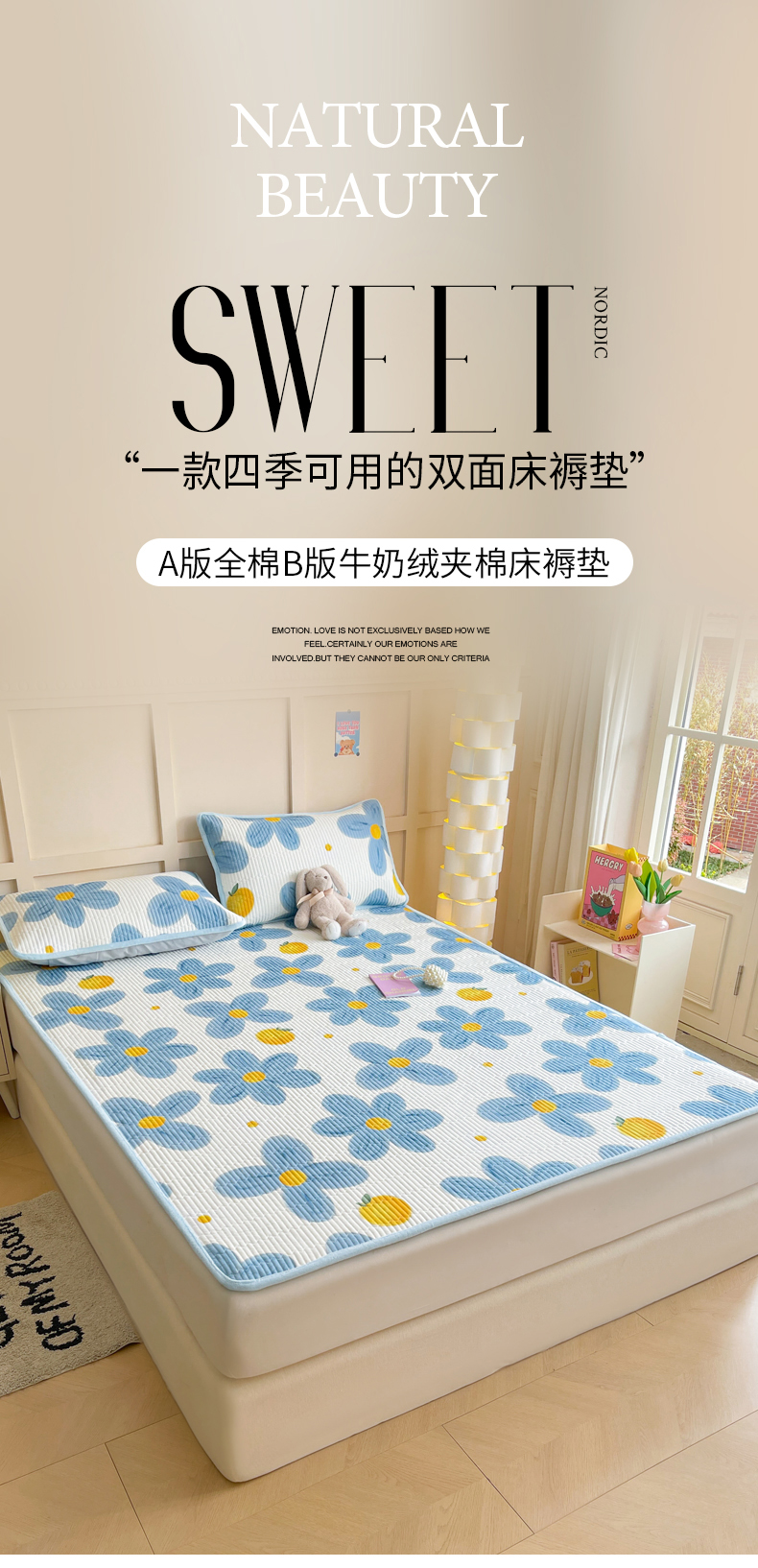 当前位置: 91家纺网 > 商品网购 > 床垫/床褥 > 普通床垫 > LIFE.丽芙 2025新款A类四季可用A版全棉数码印花B版牛奶绒单件夹棉床褥垫三件套 床褥垫-向阳花