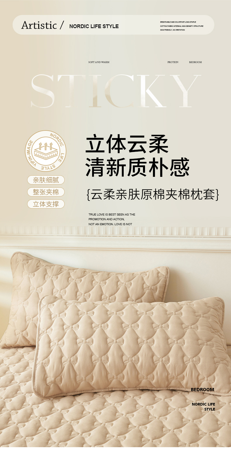 商品名称:LIFE.丽芙 2025新款水洗原棉夹棉包边枕套 蝴蝶结枕套-奶茶