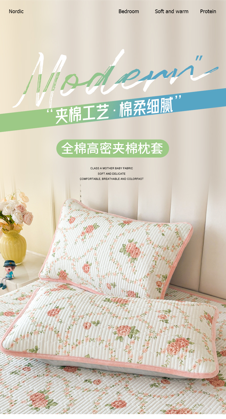 商品名称:LIFE.丽芙 2025新款A类全棉夹棉包边枕套 花锦