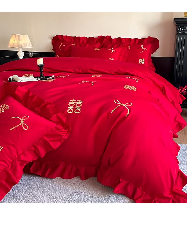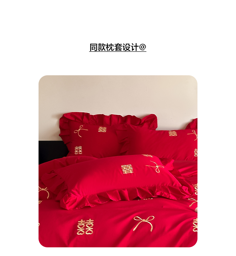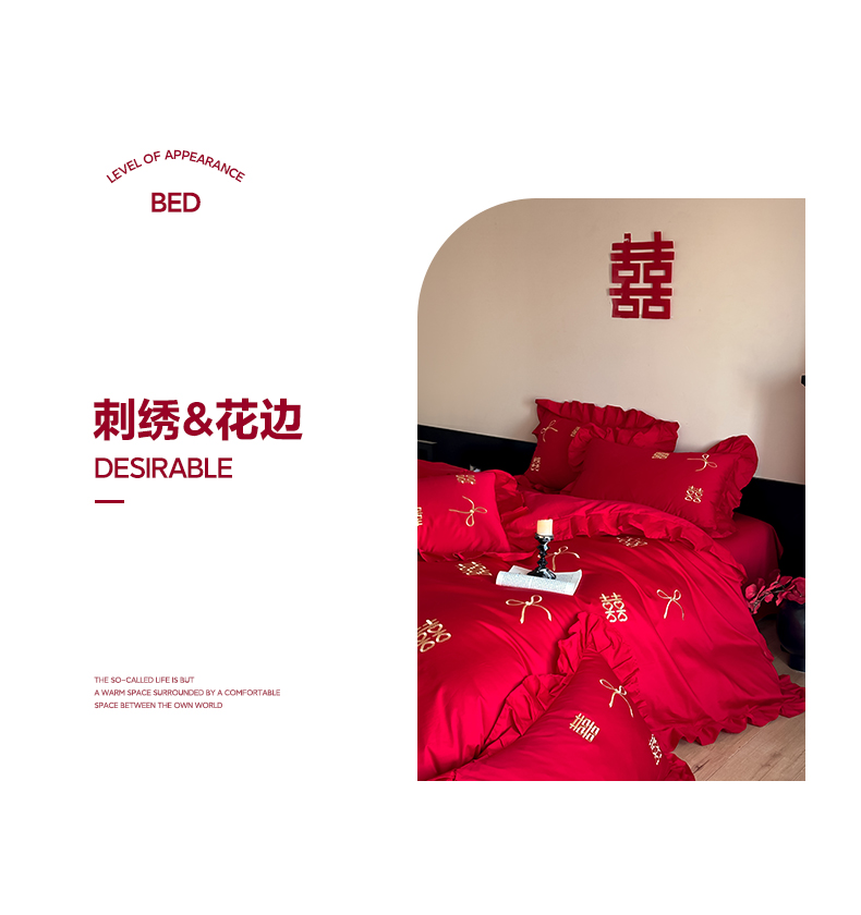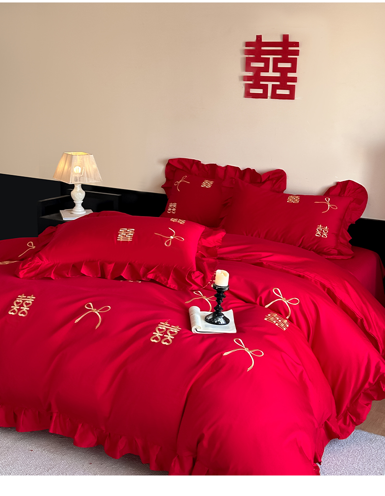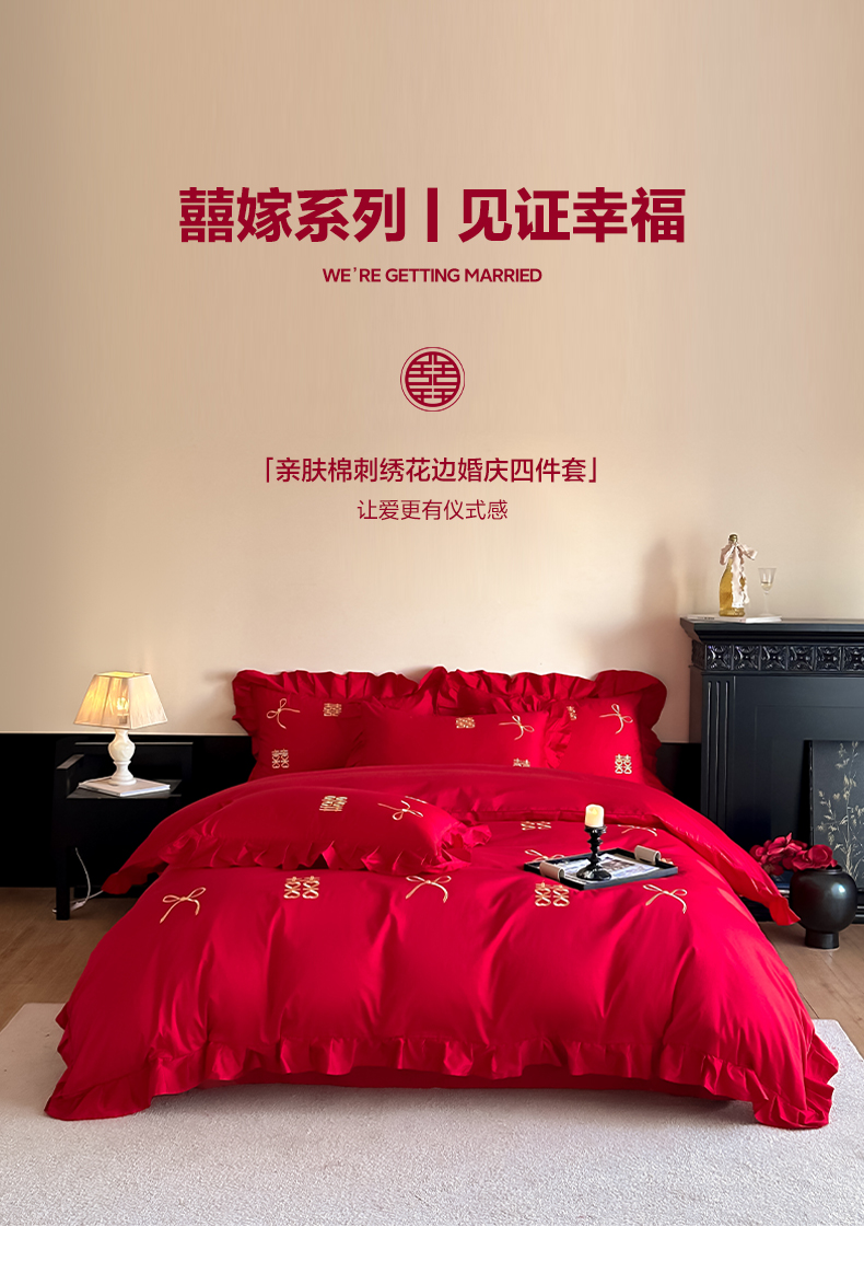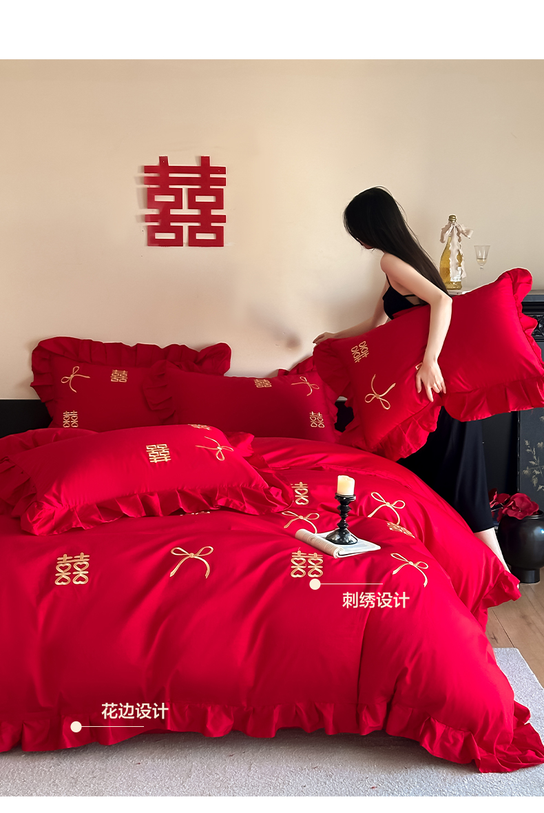(总)欧乐蒂 2025新款亲肤棉刺绣花边婚庆四件套-倾城,倾城-金,倾城-喜红