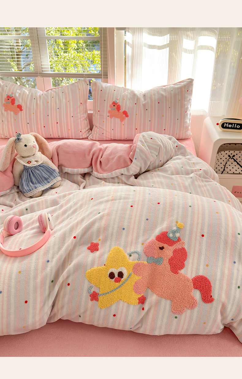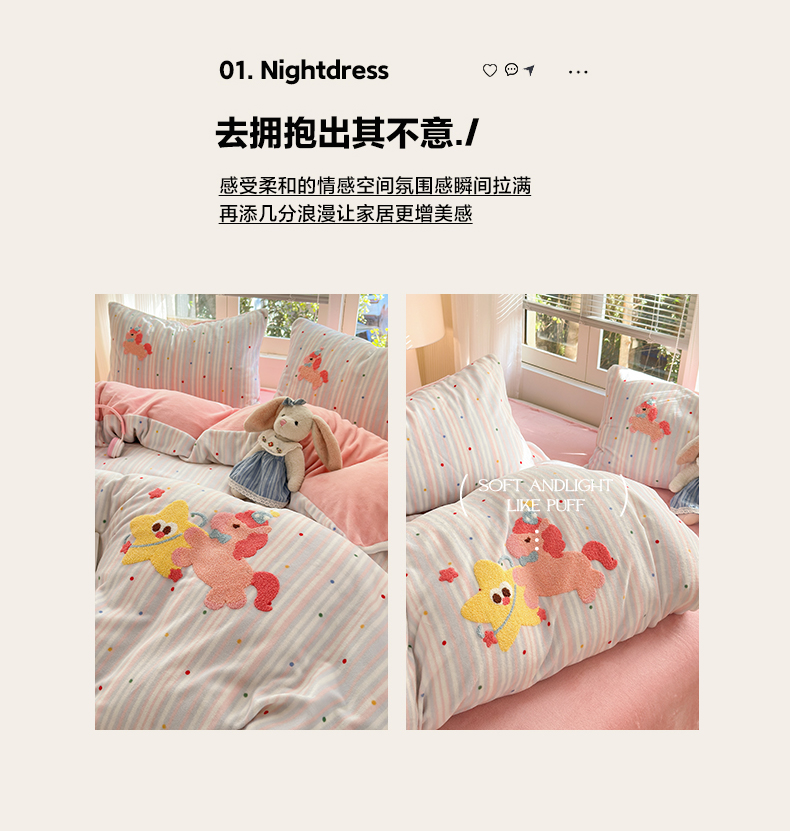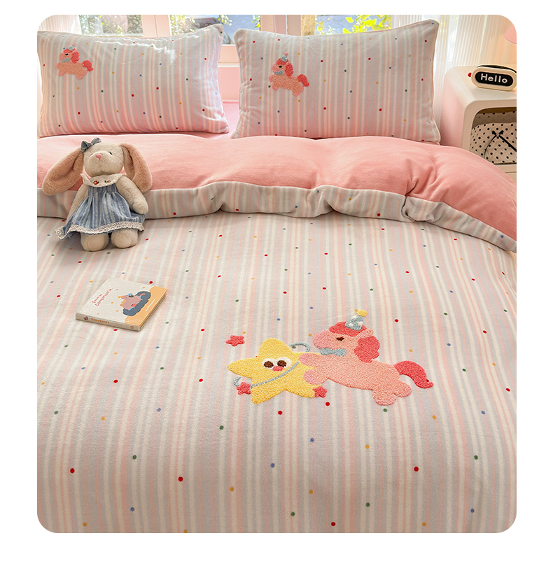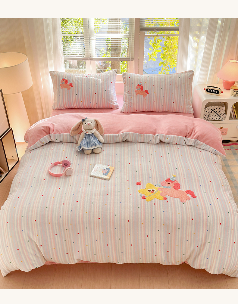 当前位置: 91家纺网 > 商品网购 > 床品套件 > 四件套 > 牛奶绒四件套 > 寐居 2025新款大阪纯色毛巾绣牛奶绒四件套 甜心小骑