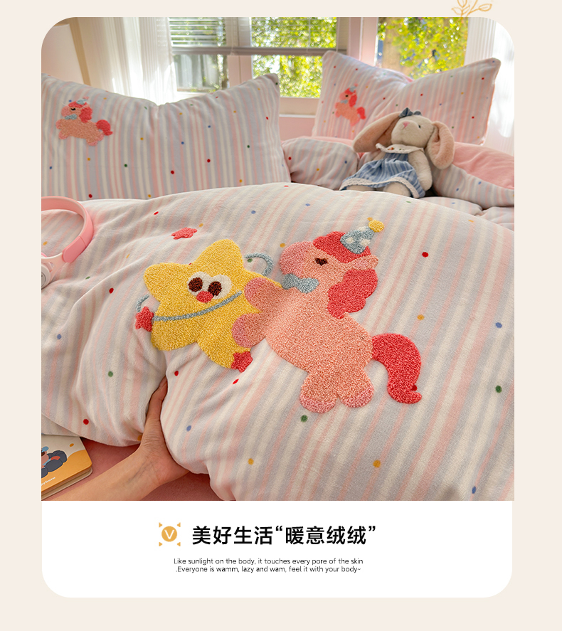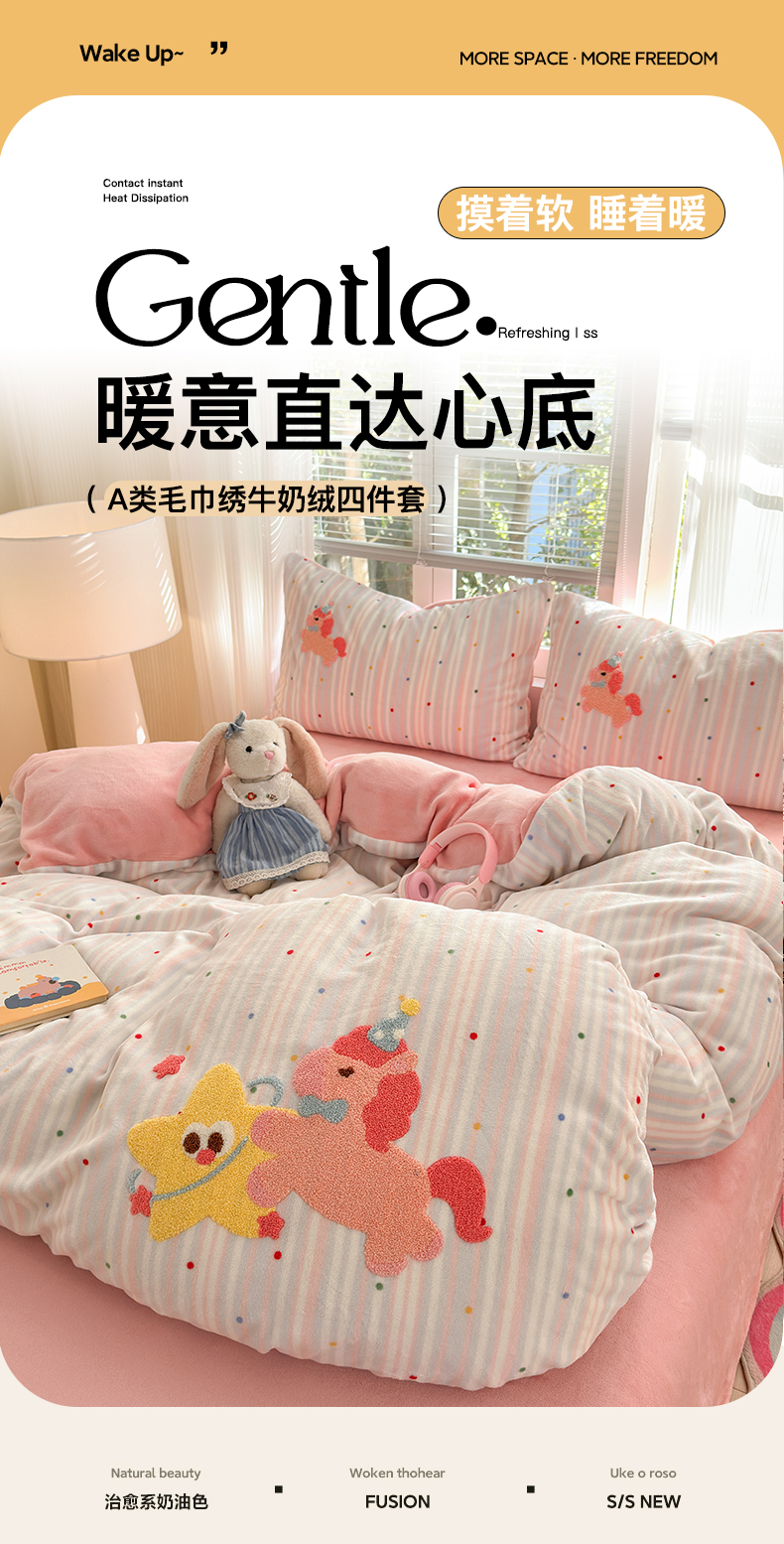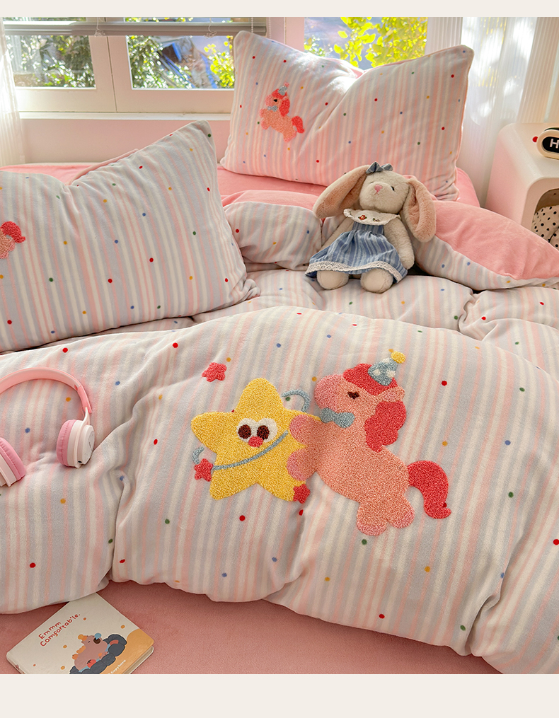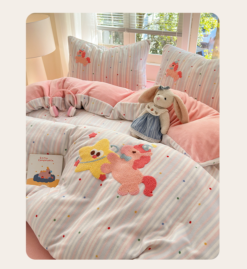 当前位置: 91家纺网 > 商品网购 > 床品套件 > 四件套 > 牛奶绒四件套 > 寐居 2025新款大阪纯色毛巾绣牛奶绒四件套 甜心小骑