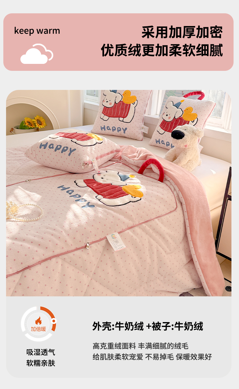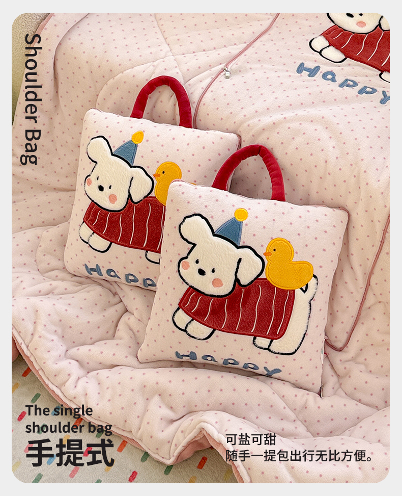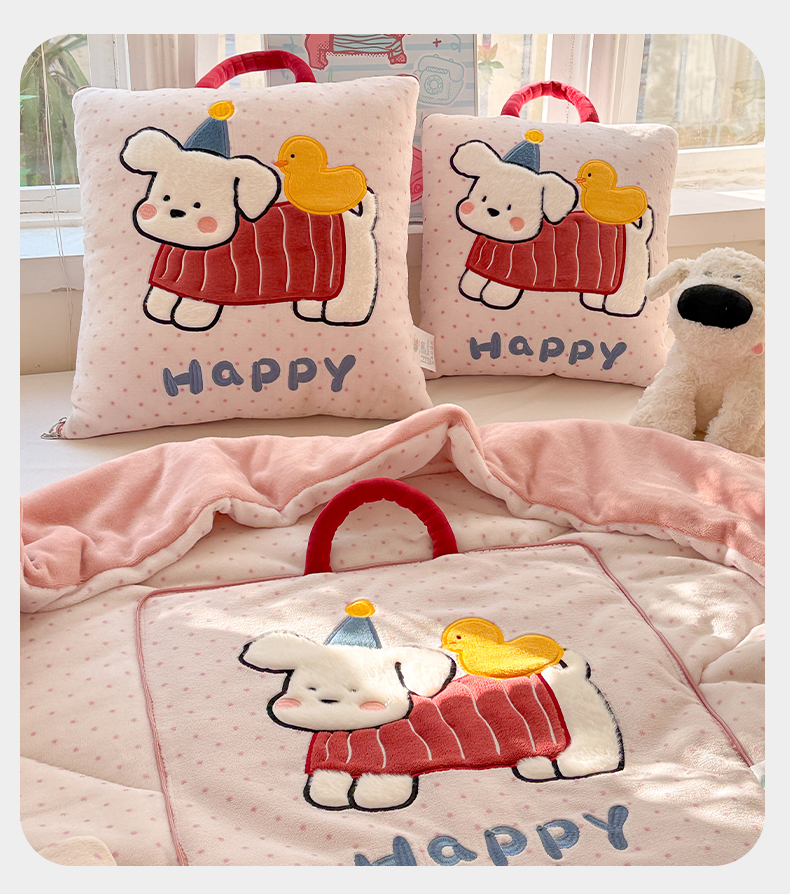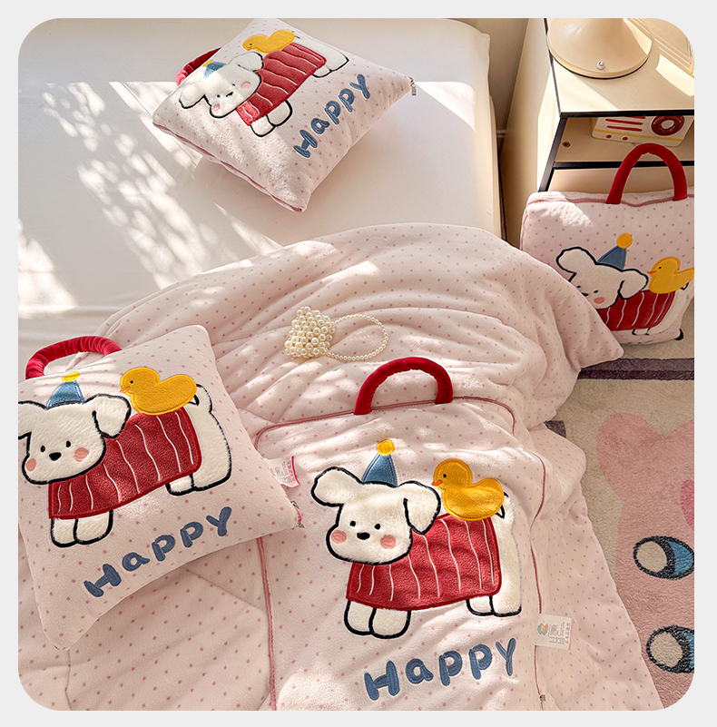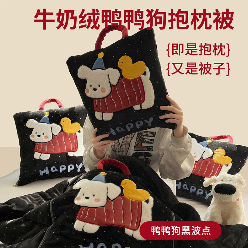 商品名称:古本家居 2025新款牛奶绒鸭鸭狗抱枕被 鸭鸭狗黑波点