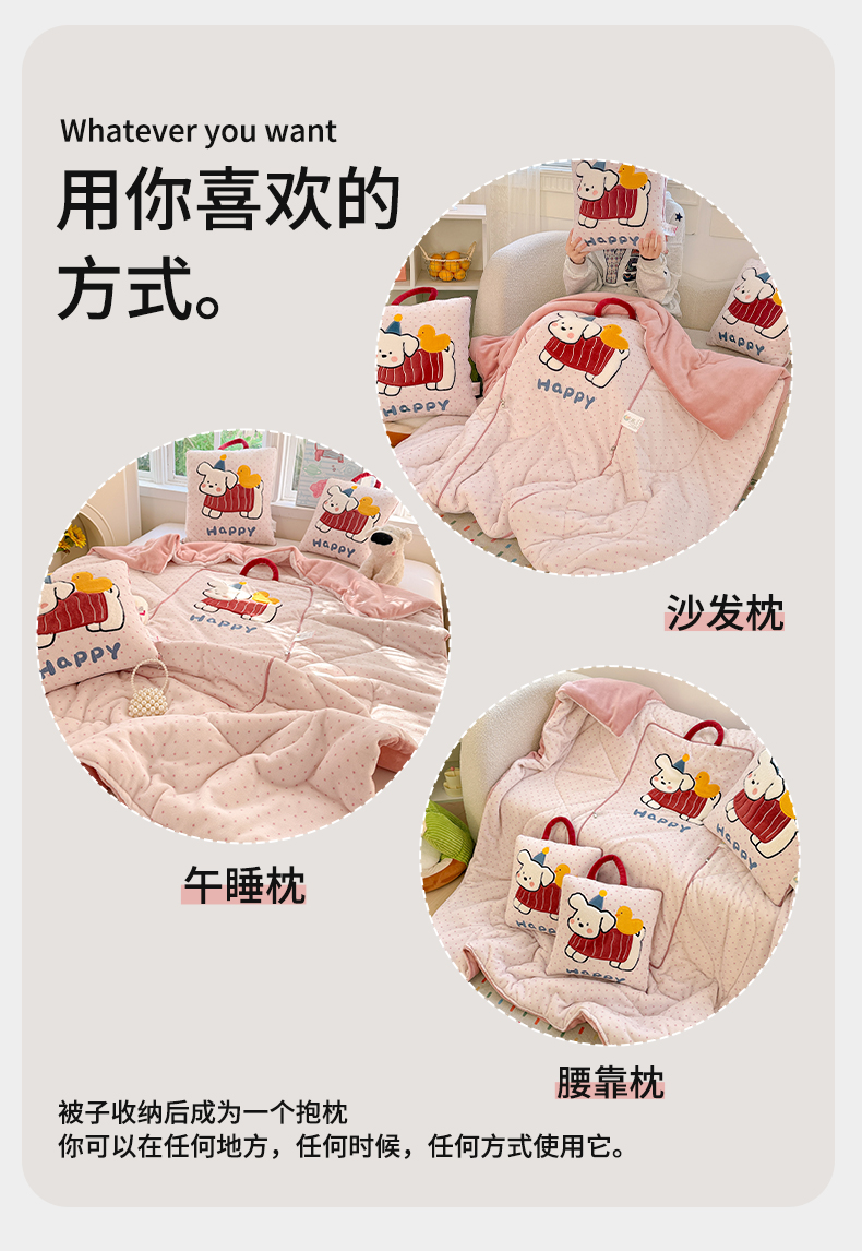 (总)古本家居 2026新款四季款水洗小星人抱枕被,四季小星人绿格,四季小星人粉格,四季小星人黄格,四季小星人蓝格