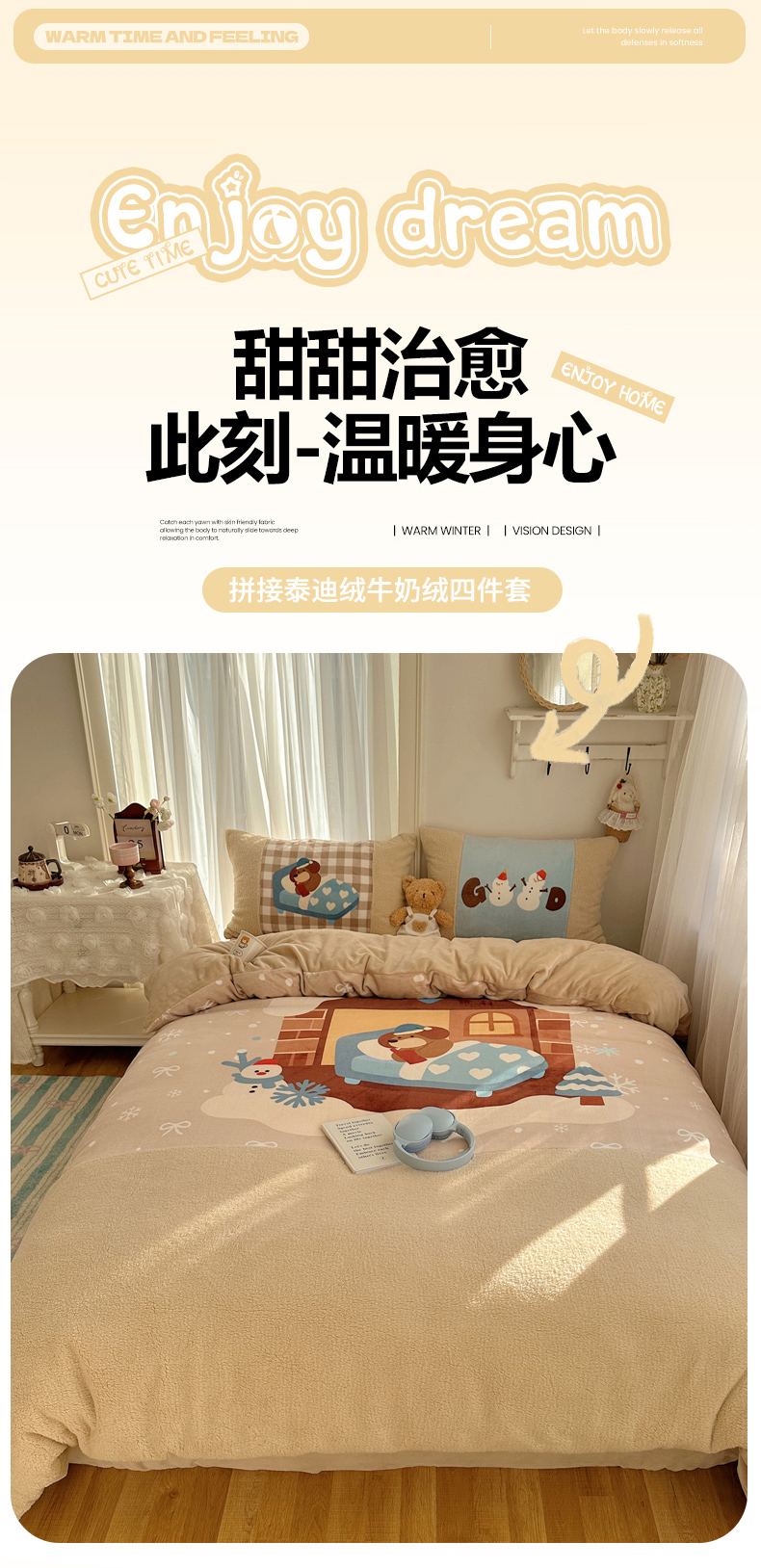 (总)Sweet dreams甜梦 2025秋冬数码大版牛奶绒泰迪绒拼接四件套
