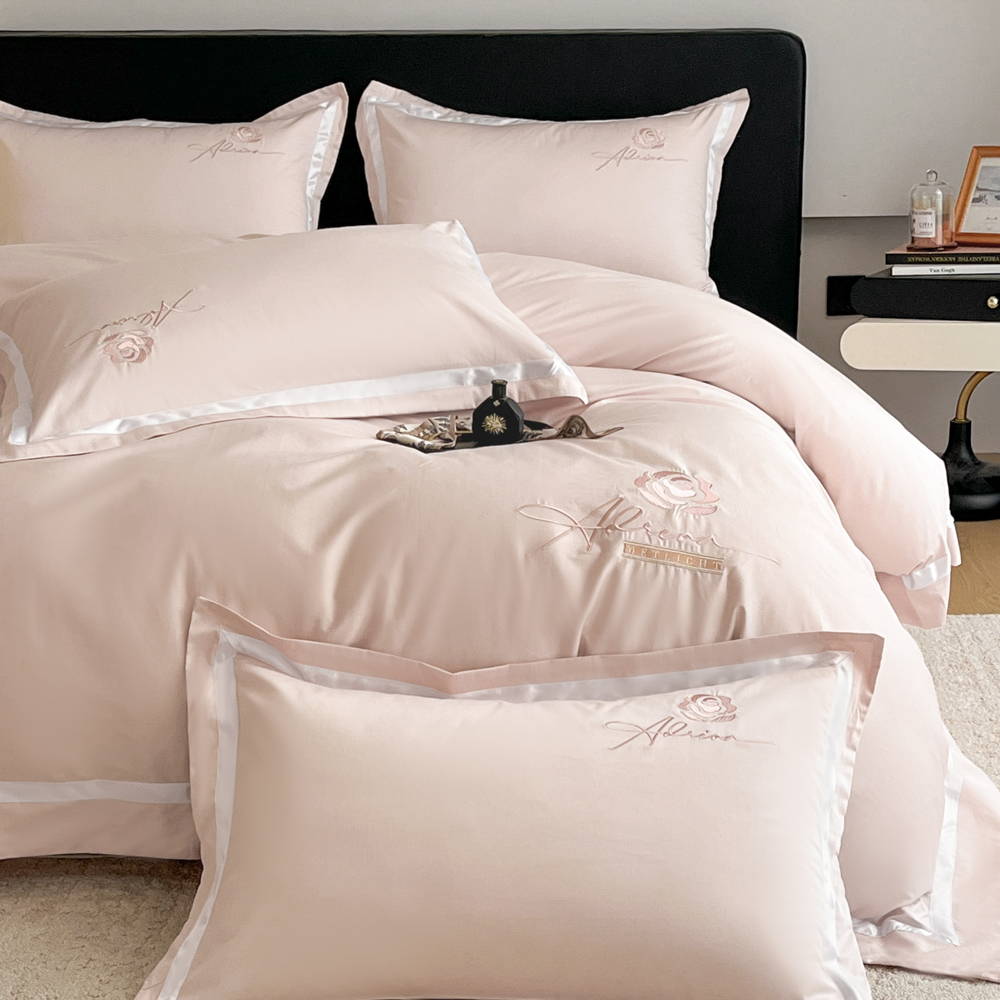 (总)新方向 2025新款刺绣全棉100s贡缎长绒棉四件套-威尔,威尔-蔷薇粉,威尔-爵士灰