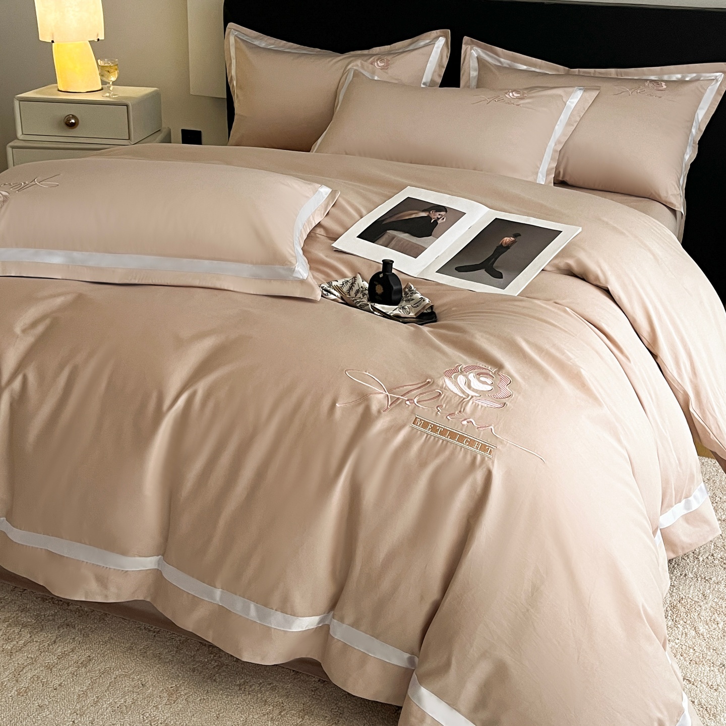 (总)新方向 2026新款刺绣全棉100s贡缎长绒棉四件套-茶花开了,茶花开了-蔷薇粉,茶花开了-香槟,茶花开了-星空蓝
