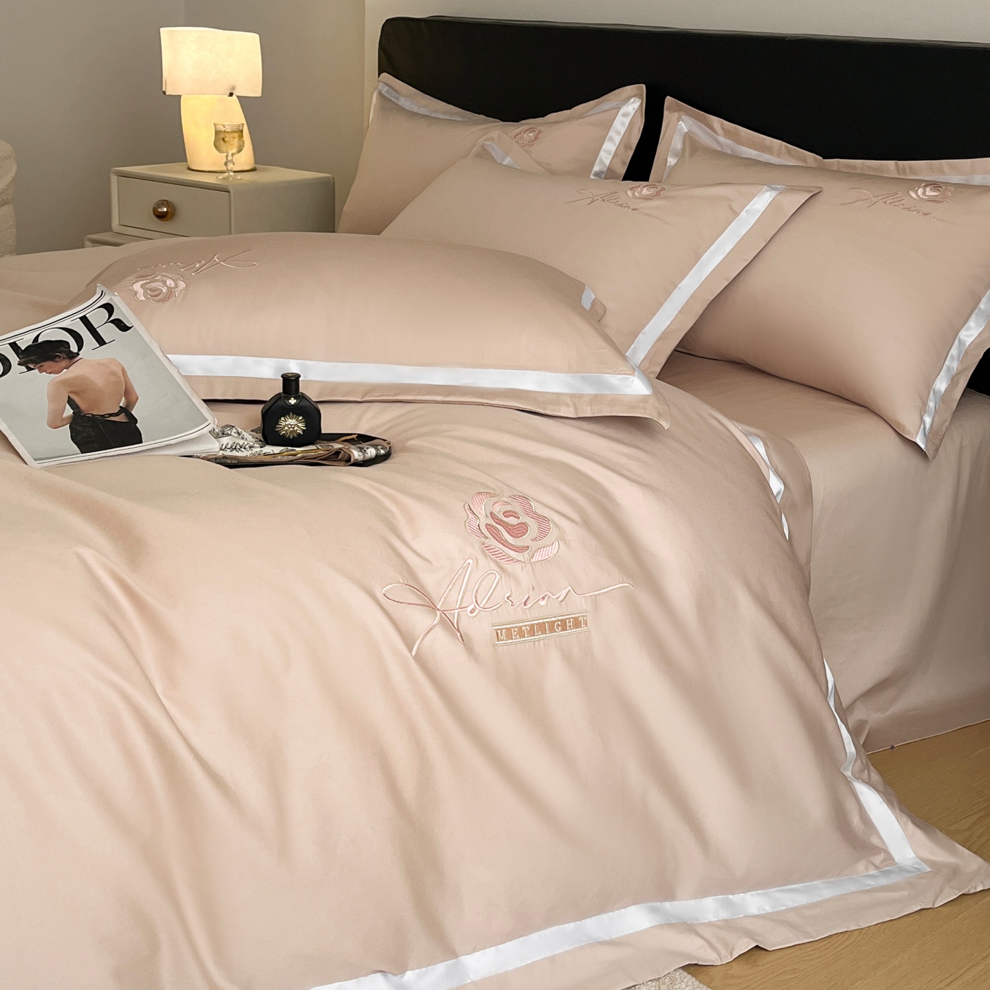(总)新方向 2025新款刺绣全棉100s贡缎长绒棉四件套-自信,自信-蔷薇粉,自信-香槟,自信-星月蓝