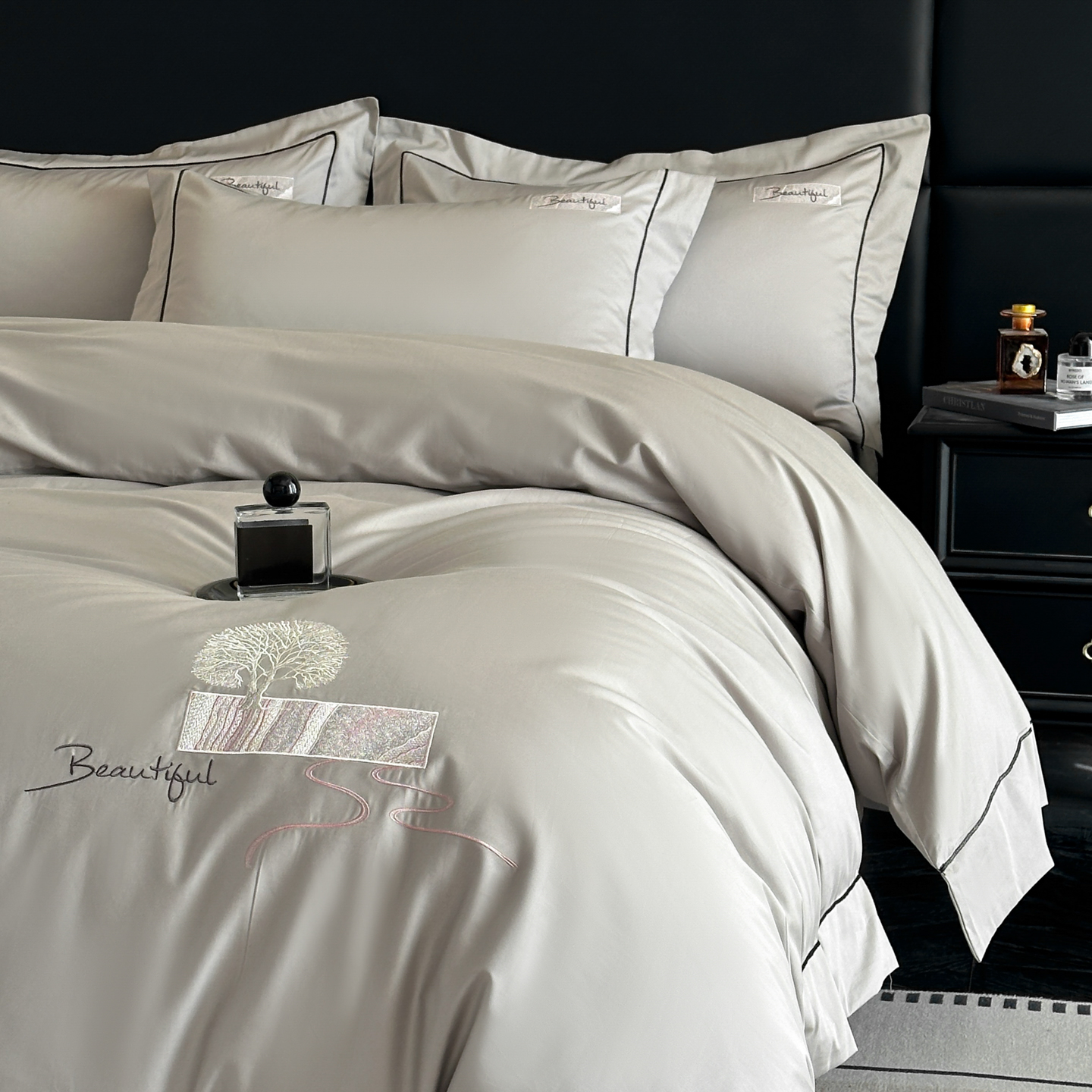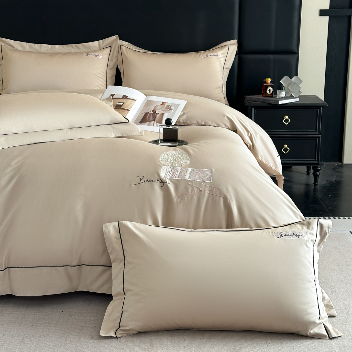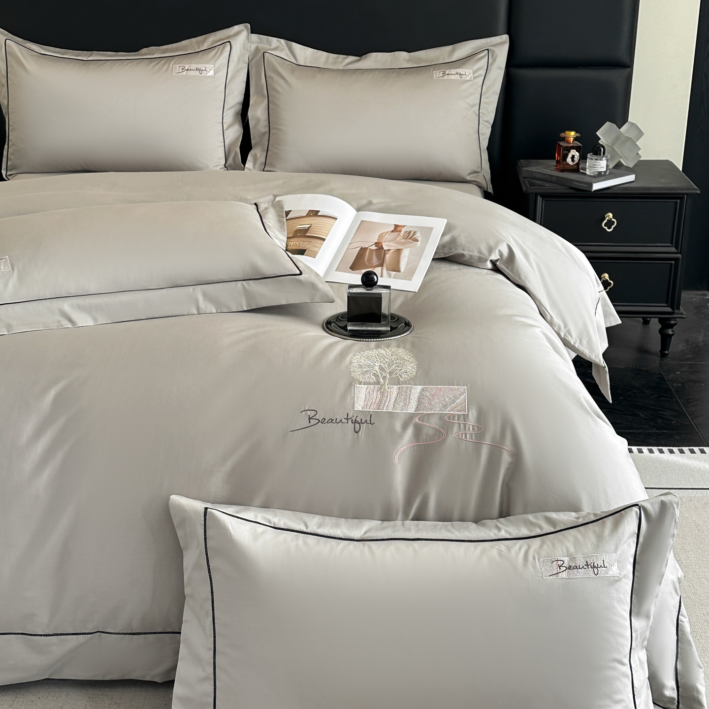(总)【控价】新方向 2026新款 男士刺绣50s双股全棉贡缎长绒棉四件套-亚瑟,亚瑟-爵士灰,亚瑟-香槟
