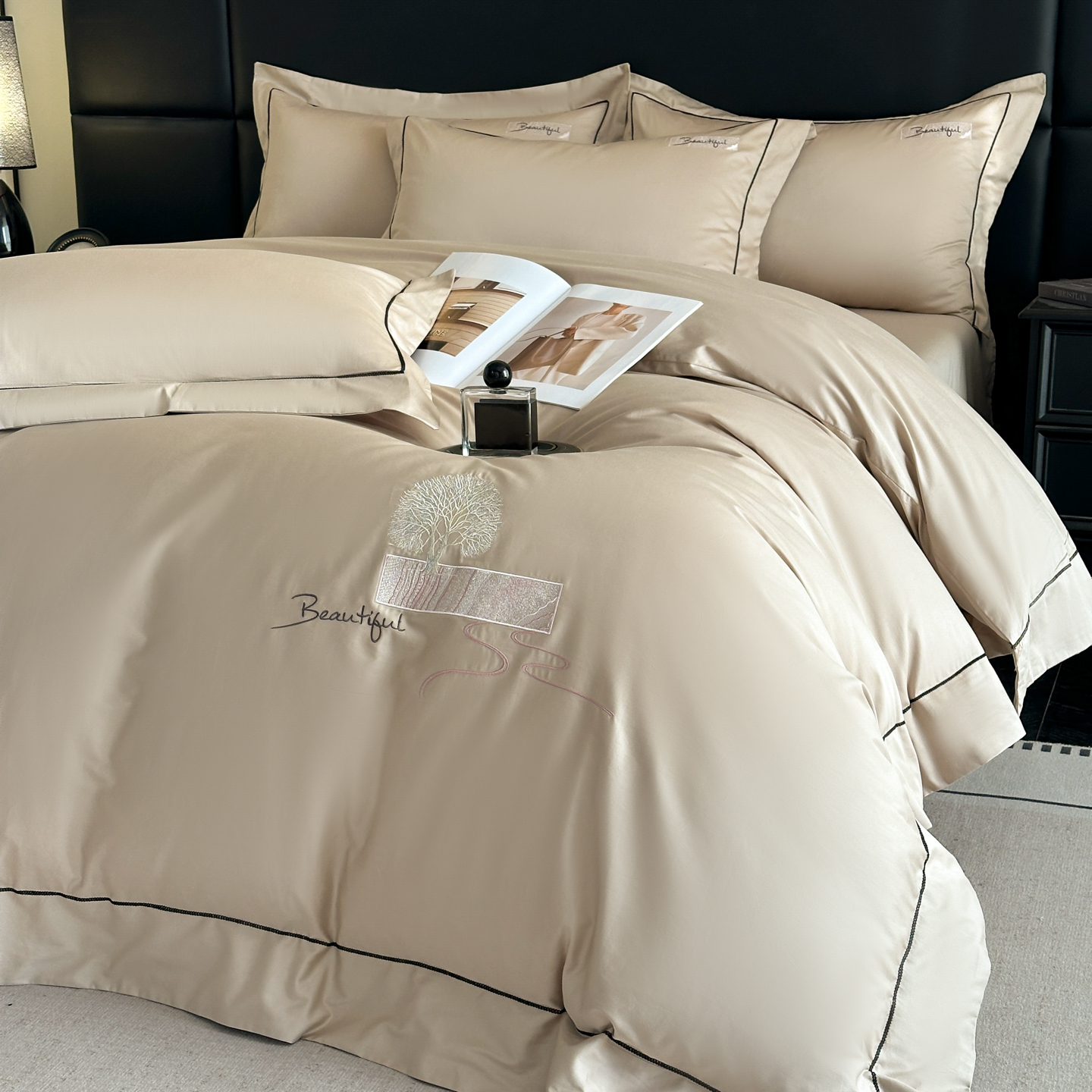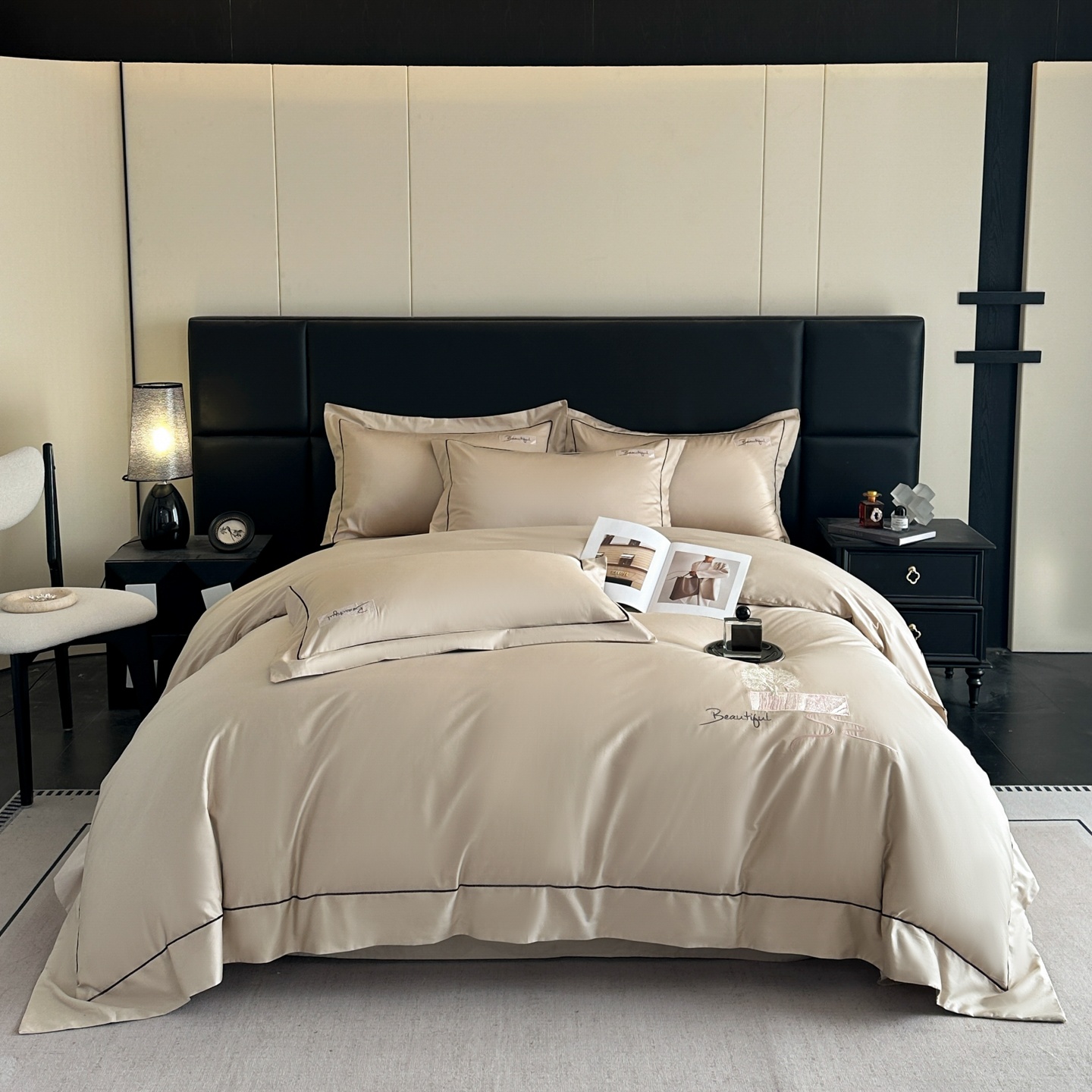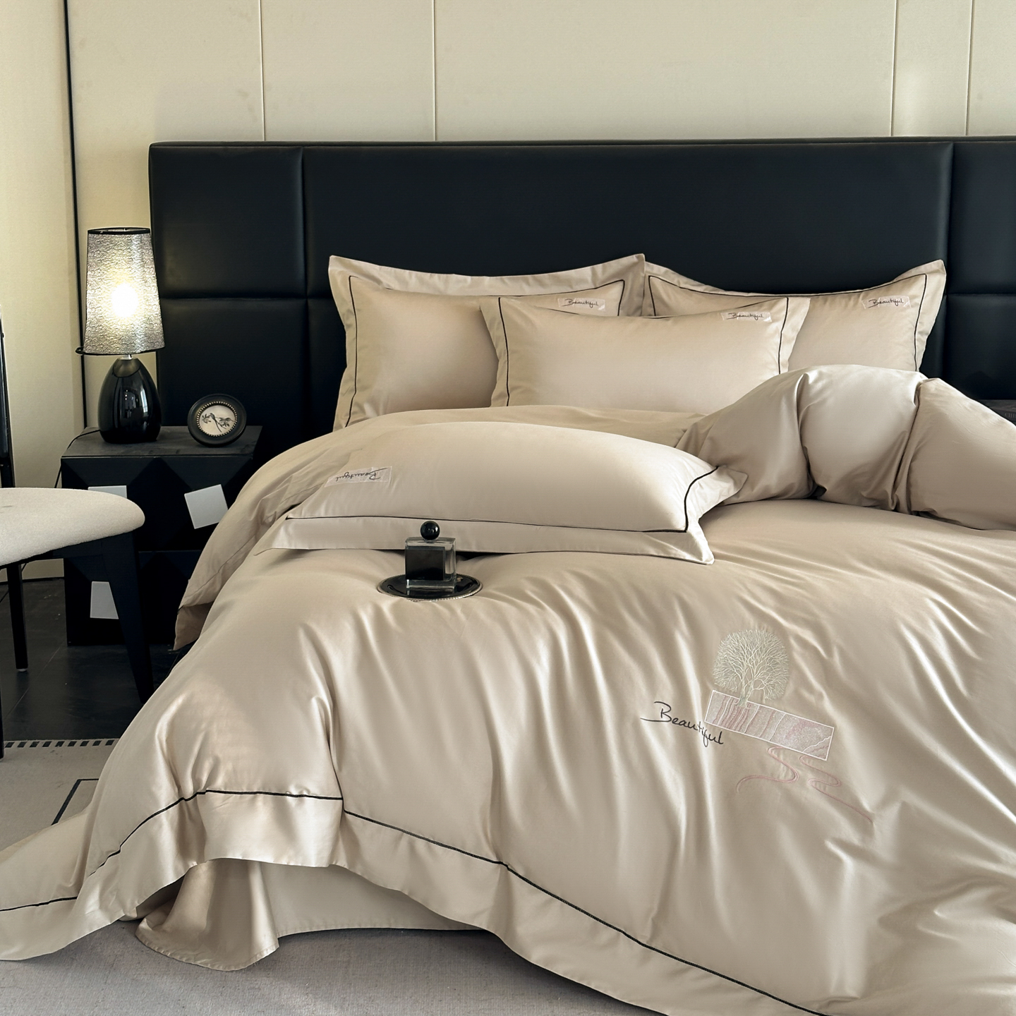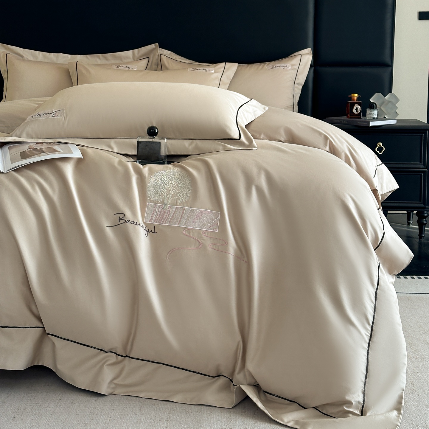 (总)【控价】新方向 2026新款 男士刺绣50s双股全棉贡缎长绒棉四件套-亚瑟,亚瑟-爵士灰,亚瑟-香槟