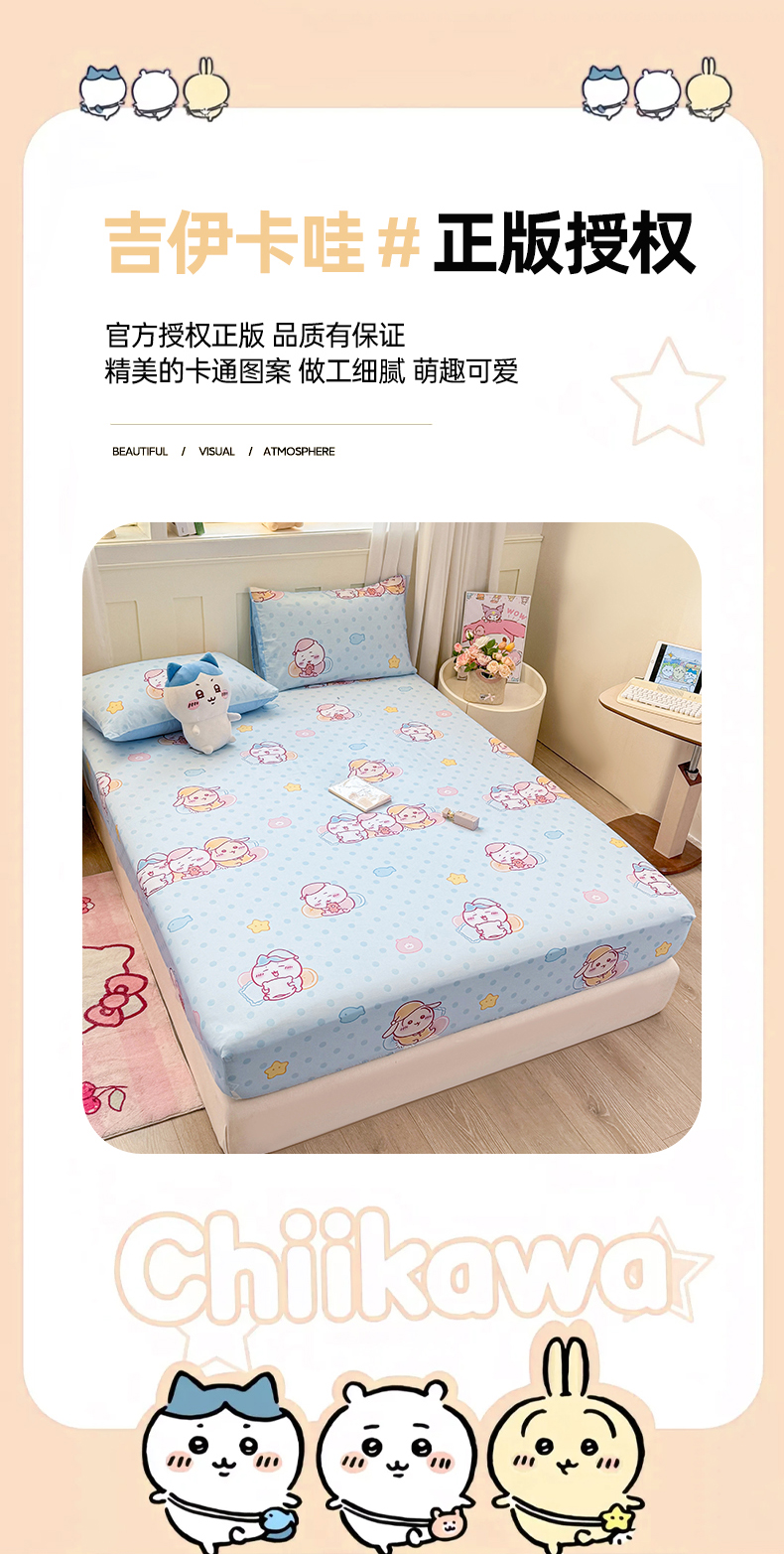 (总)博雅 2025新款全棉吉伊咔哇单床笠,白色吉伊卡哇,粉色吉伊卡哇,家族吉伊卡哇,蓝格吉伊卡哇,绿条纹吉伊卡哇,星梦吉伊卡哇