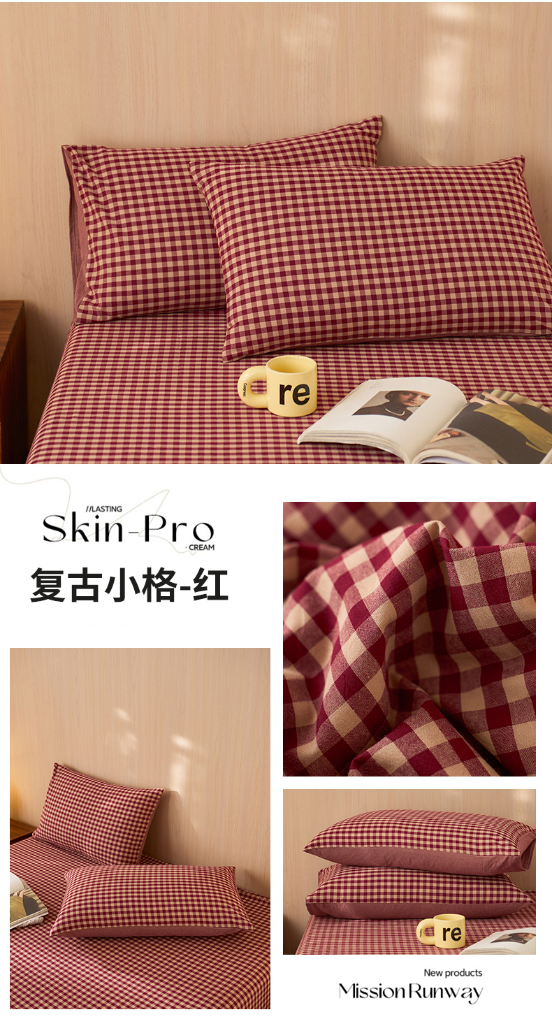 (总)启程家纺 2026新款纯棉水洗棉复古小格多规格系列四件套,复古小格-黑,复古小格-红,复古小格-黄,复古小格-咖,复古小格-紫