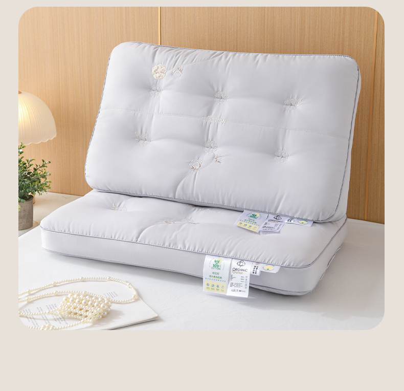 商品名称:仁宇枕业 2025新款新品彩色棉花朵枕头枕芯 彩色棉花朵枕-灰色