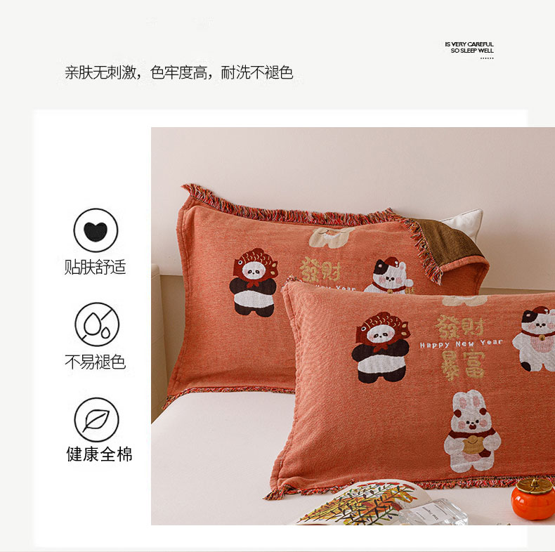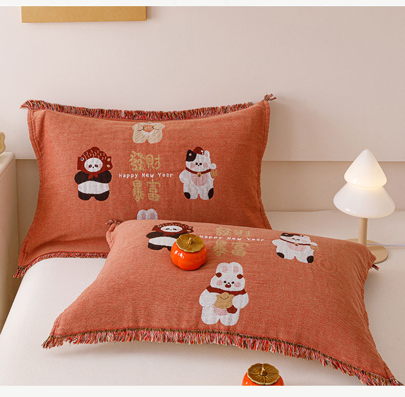(总)麻依 2025新款四层纱布全棉新年大红枕巾流苏婚庆枕盖,八方来财,发财暴富,福禄,福气满满,福娃,公主发财,好运,锦鲤,马上有钱,平安喜乐,圣诞小猫,新年快乐,组合
