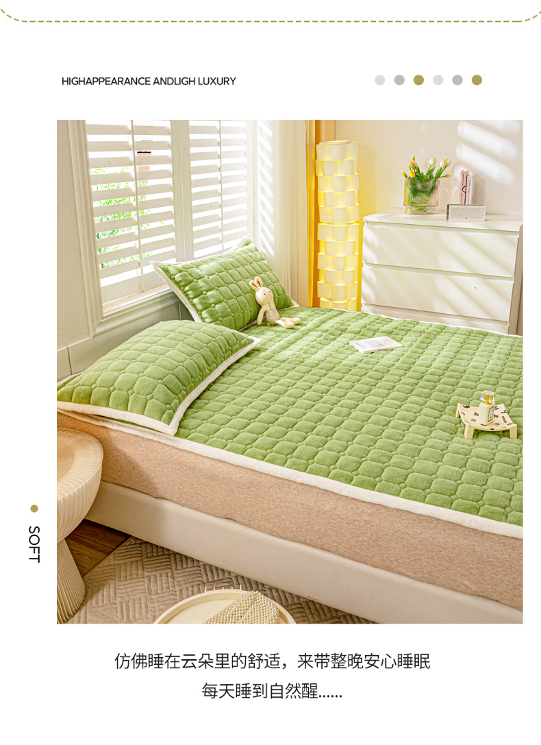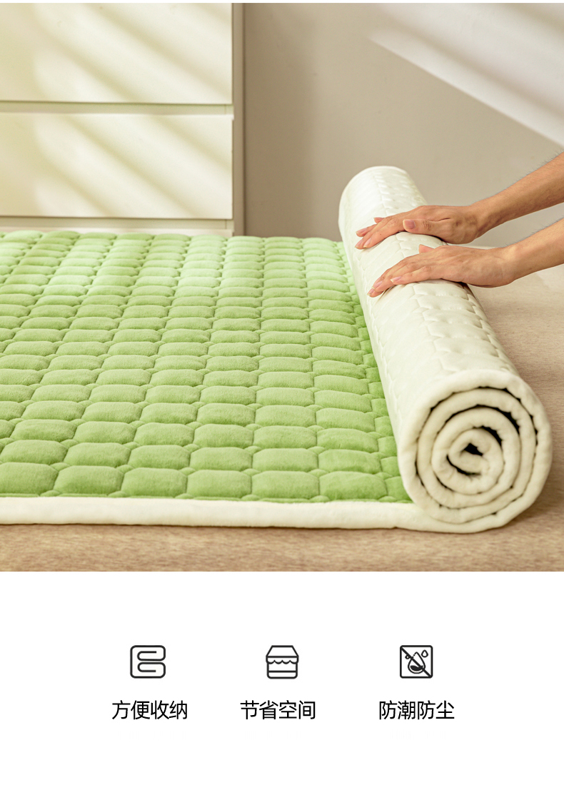 女子家纺 2025新款全消光牛奶绒床垫 苹果绿
