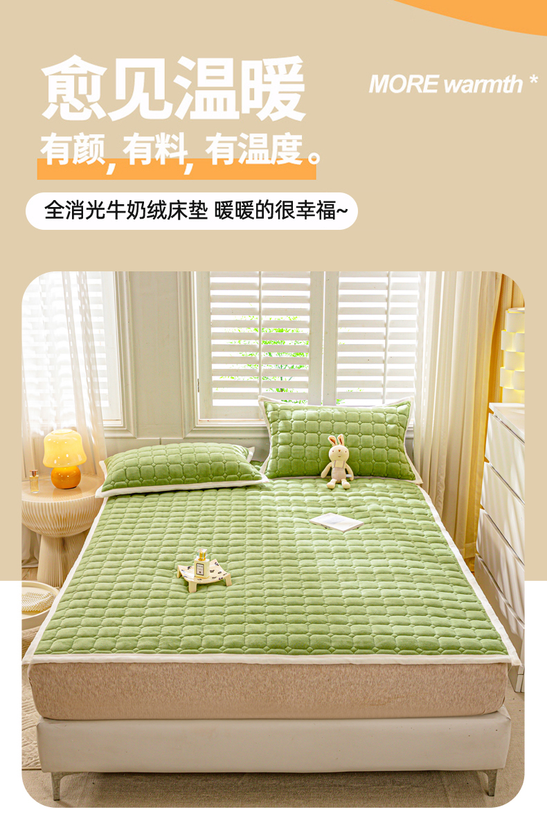 商品名称:女子家纺 2025新款全消光牛奶绒床垫 苹果绿