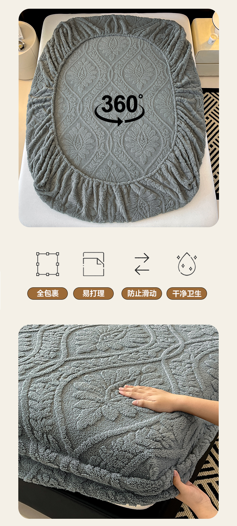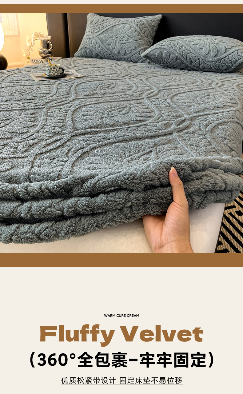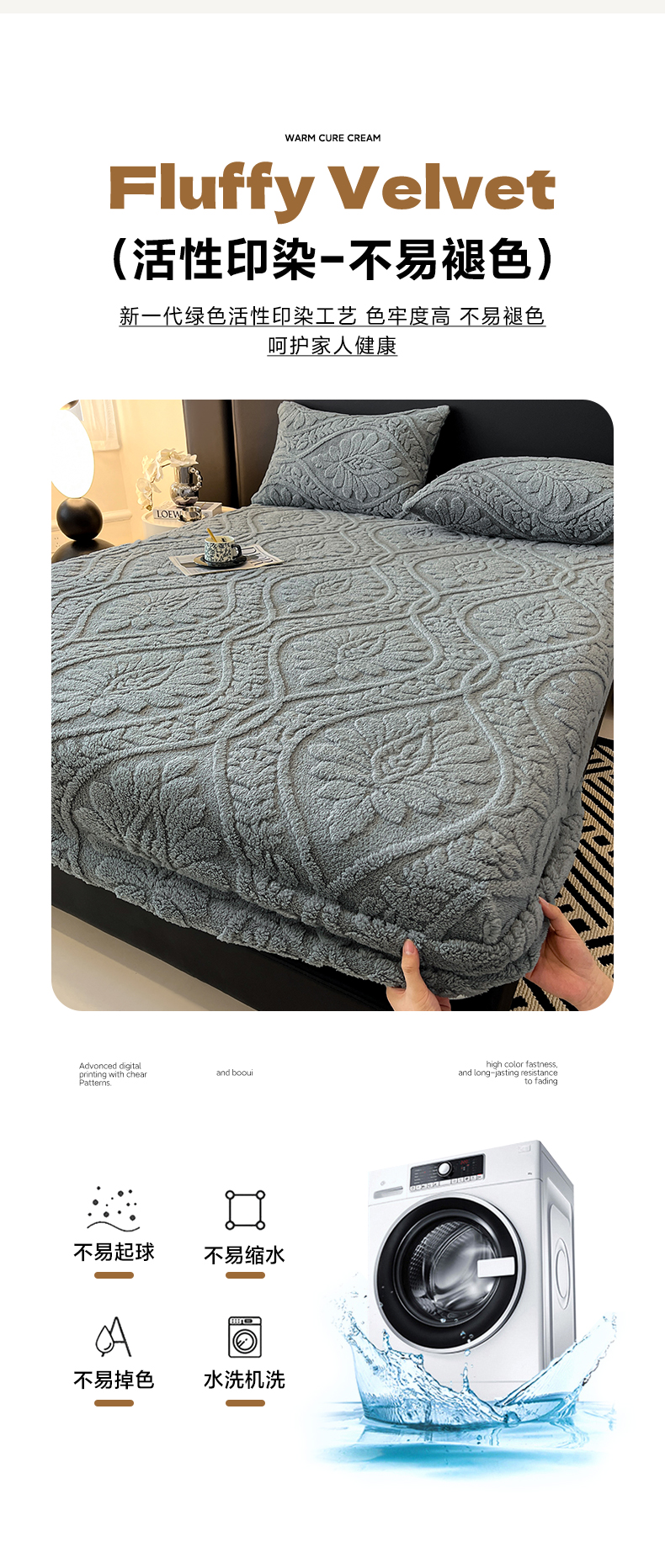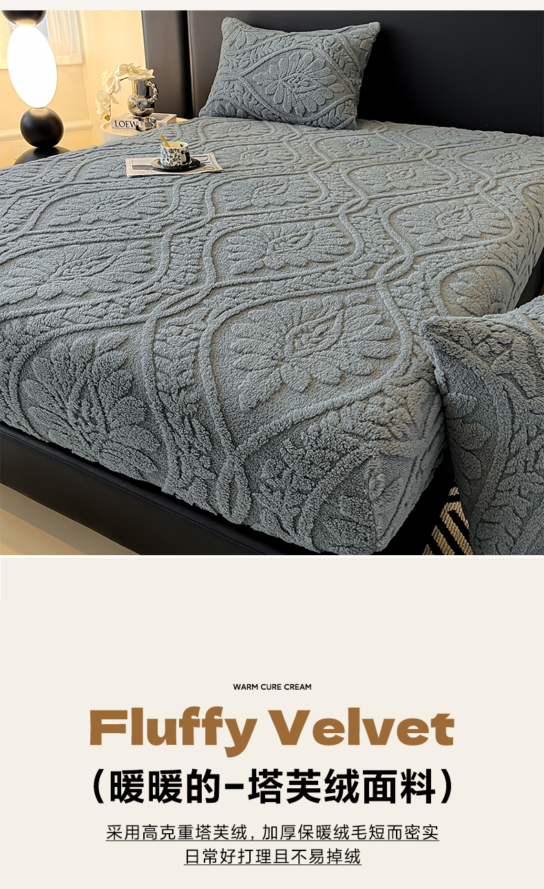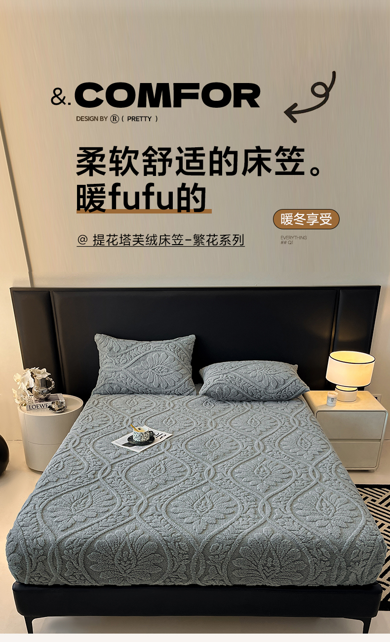 • 91家纺网 家纺一手货源 找家纺 (总)莱家富 2026新款塔芙绒舒棉绒雕花绒单床笠 床笠单件-花朵系列(可提供压缩),组合图仅供展示不可下单,花朵-粉玉,花朵-湖蓝,花朵-米驼,花朵-奶白,花朵-桑绿,花朵-雾灰