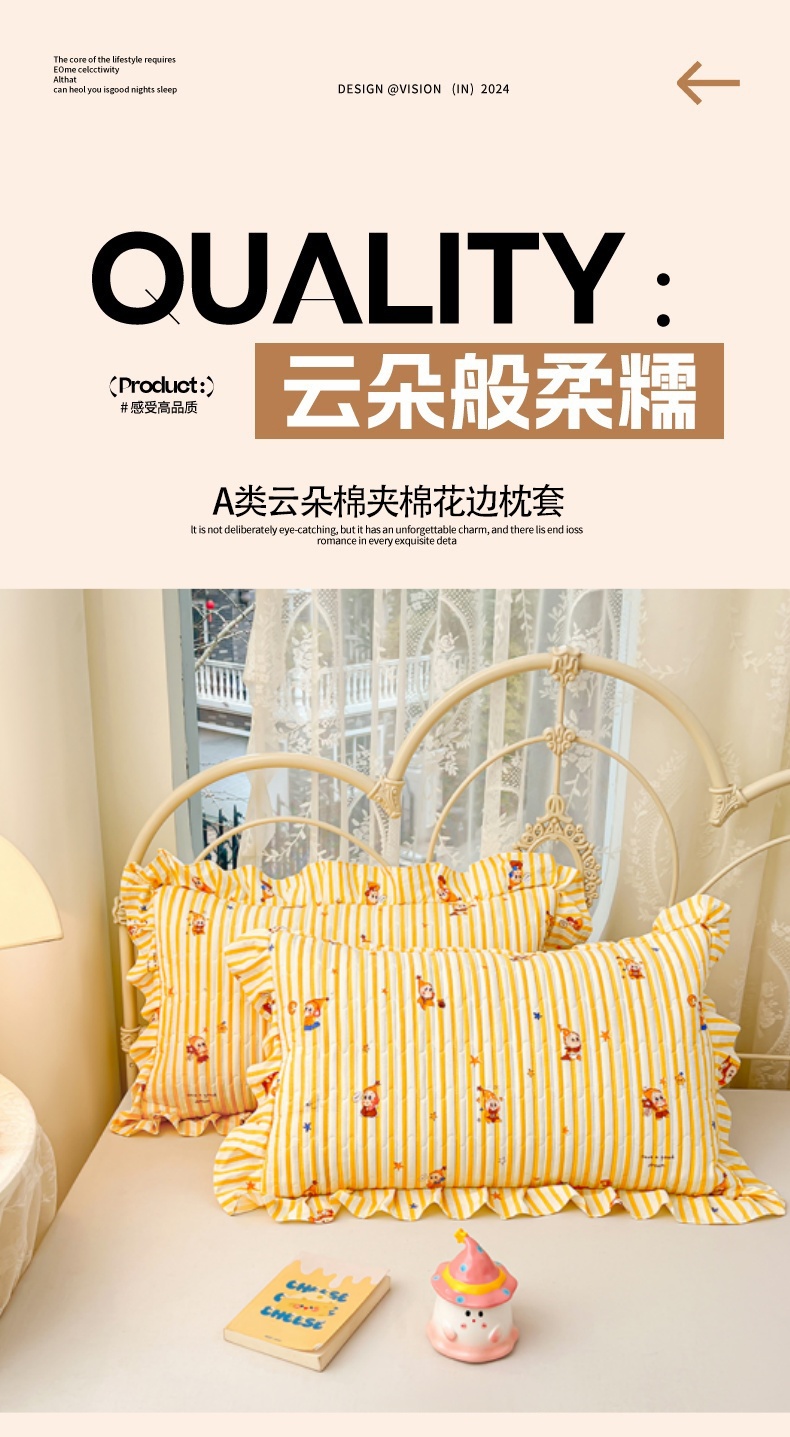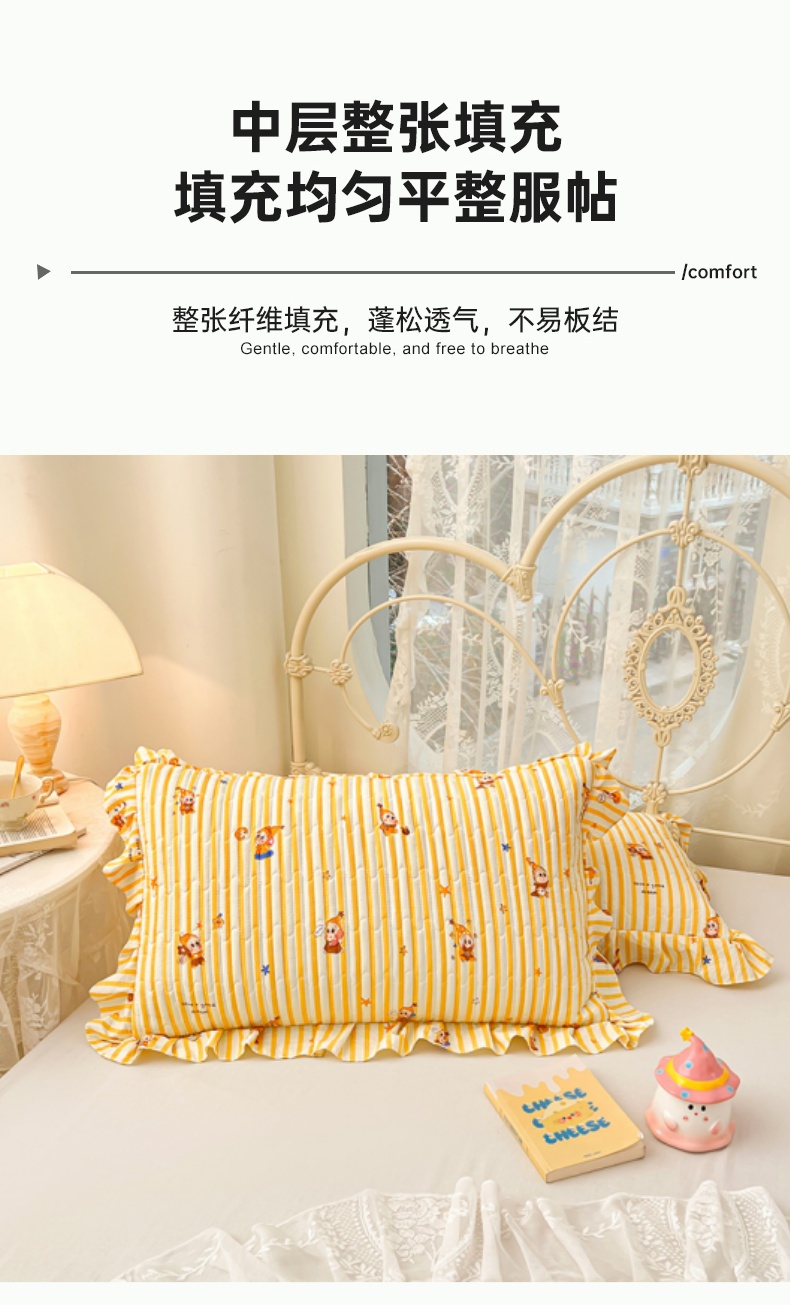 商品名称:梦舒羽 2026新款A类云朵棉夹棉花边枕套宿舍单人一只装枕芯内胆套-单人枕套 小星愿(花边夹棉)