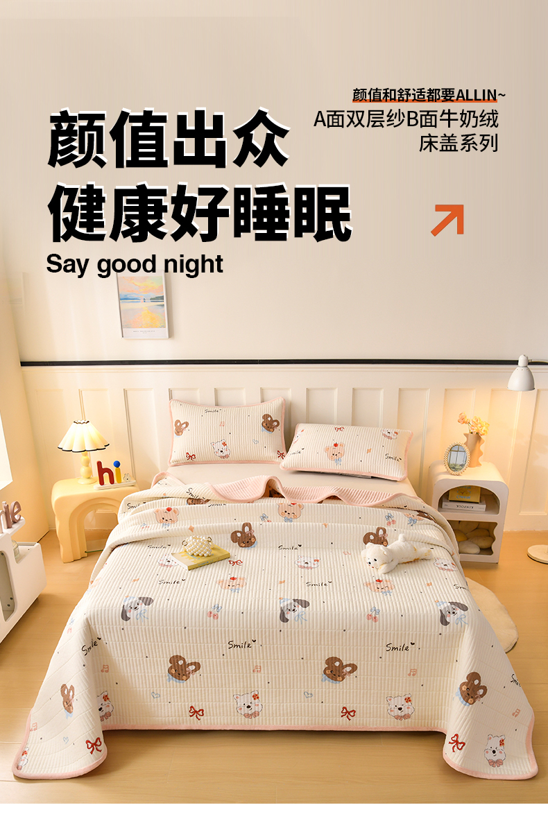 • 91家纺网 家纺一手货源 找家纺 (总)悠米悠家 2026新款卡通棉拼绒夹棉床盖单品床盖床盖单件,萌宠抱抱粉,甜趣南瓜,蜜语甜梦,蜜熊絮语,可可萌熊,晨间花园,萌趣LABUBU,格调蝶韵,墨色花卉,赫本日记,青屿花园,告白气球,温软蝶梦,趣味乐园,组合图仅做展示不可下单