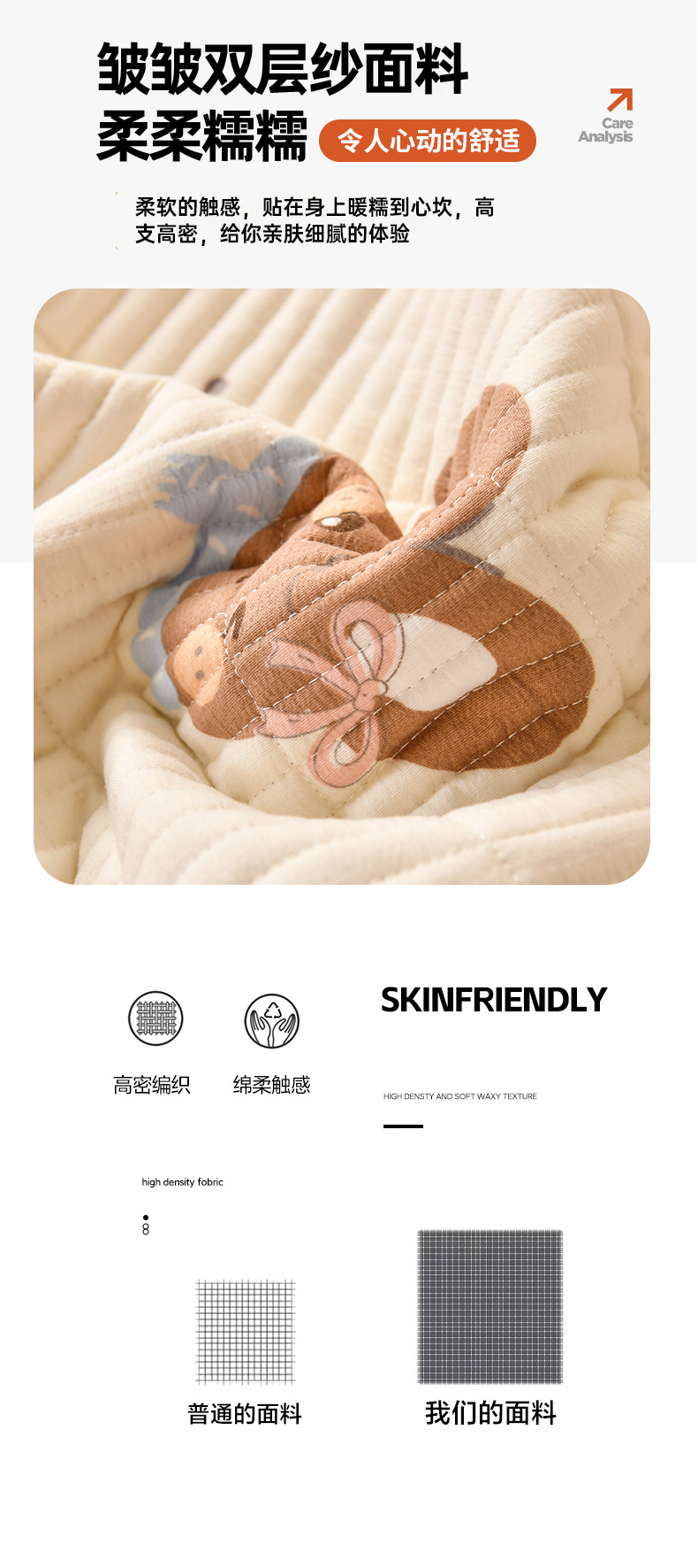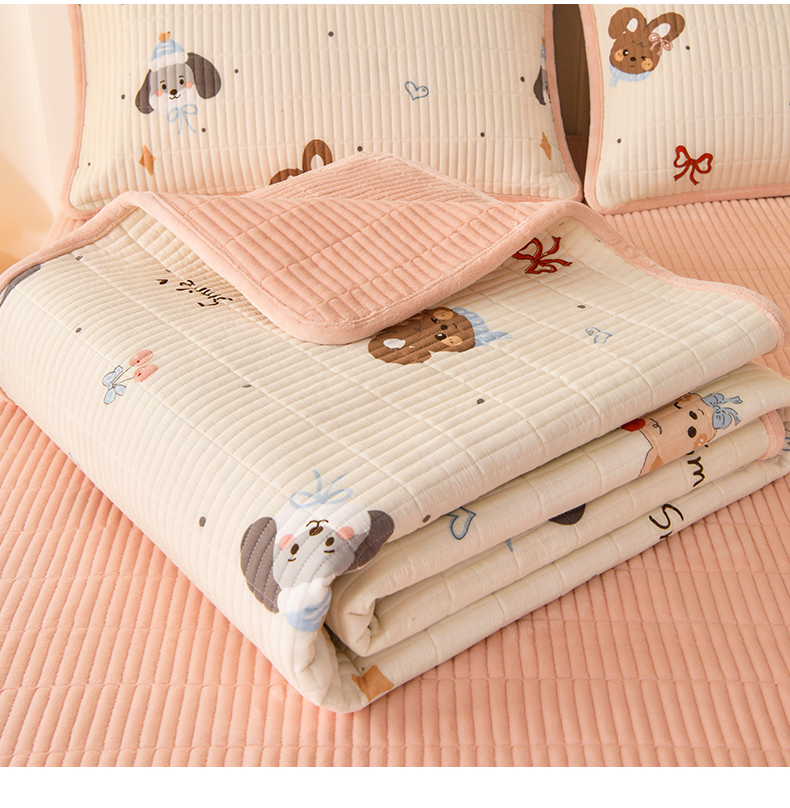 悠米悠家 2026新款卡通棉拼绒夹棉床盖单品床盖床盖单件 萌宠抱抱粉