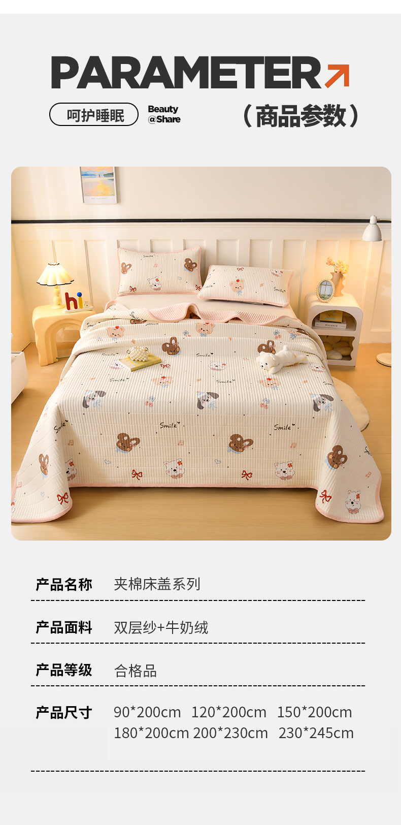 (总)悠米悠家 2026新款卡通棉拼绒夹棉床盖单品床盖床盖单件,萌宠抱抱粉,甜趣南瓜,蜜语甜梦,蜜熊絮语,可可萌熊,晨间花园,萌趣LABUBU,格调蝶韵,墨色花卉,赫本日记,青屿花园,告白气球,温软蝶梦,趣味乐园,组合图仅做展示不可下单