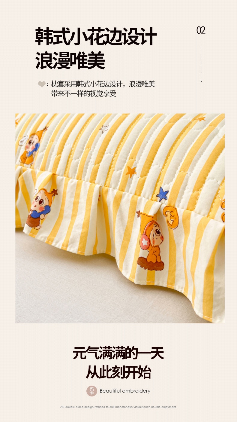 商品名称:圣比熊 2026新款A类云朵棉夹棉花边枕套宿舍单人一只装枕芯内胆套-单人枕套 小星愿(花边夹棉)