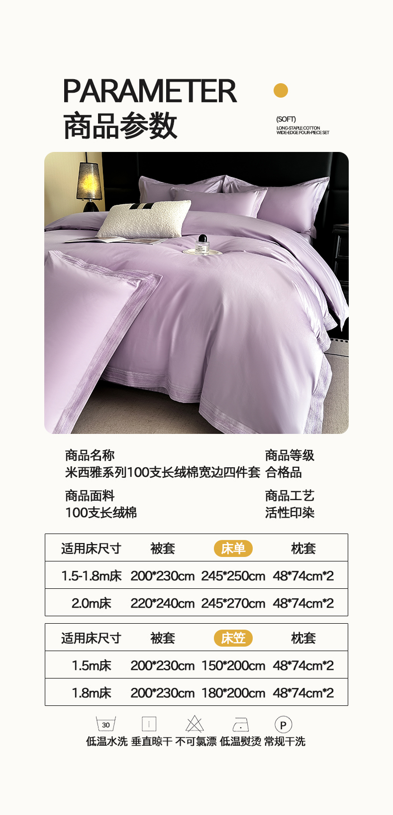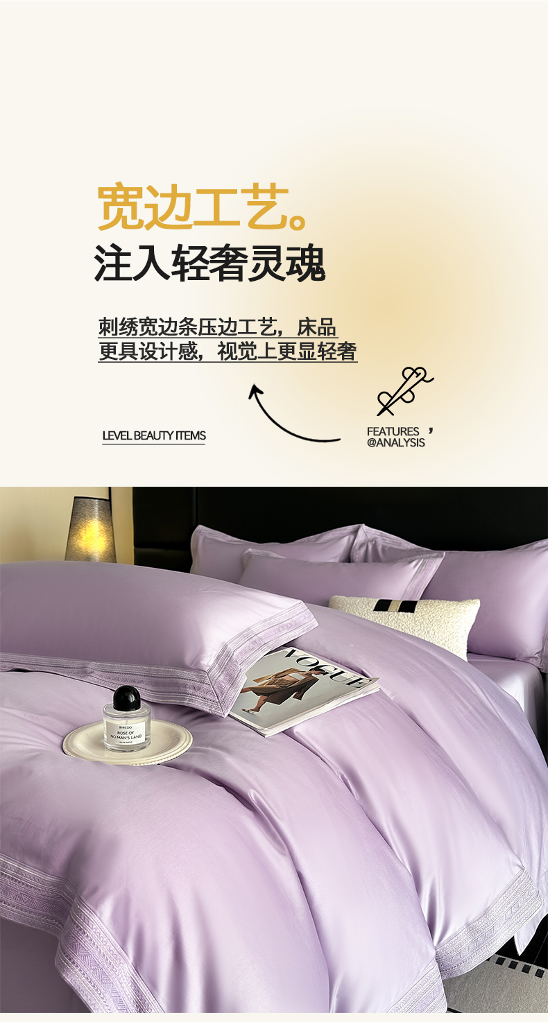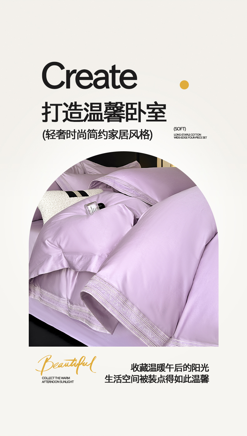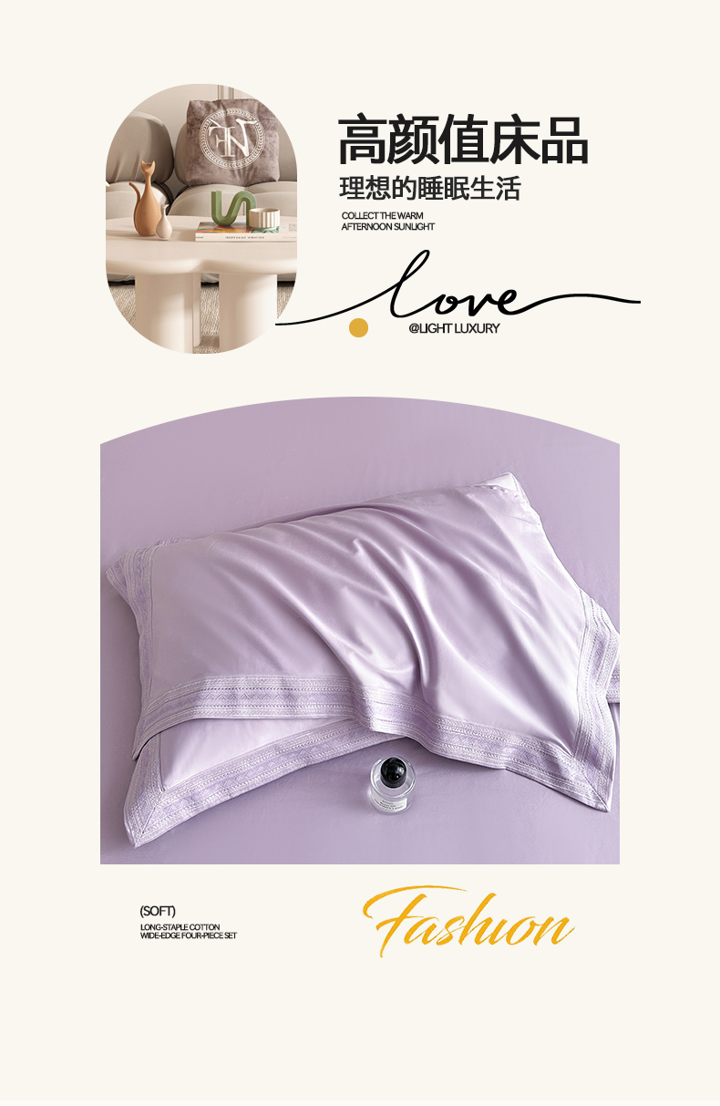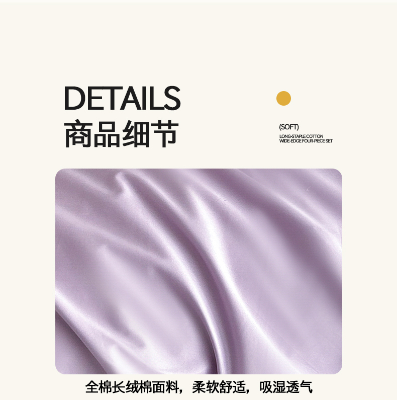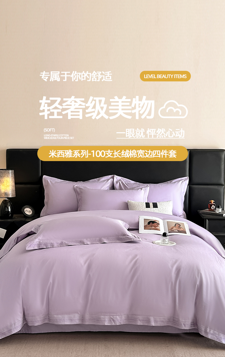 当前位置: 91家纺网 > 商品网购 > 床品套件 > 四件套 > 长绒棉四件套 > 置顶家纺 2025新款50双股支长绒棉纯棉宽边四件套-米西雅 米西雅-香芋紫