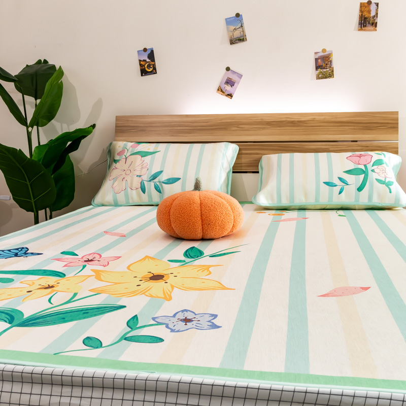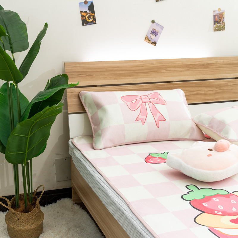商品名称:欣宜家纺 2025新款母婴级夏季新款小清新数码印花凉感冰丝席三件套空调席(有质检报告) 樱桃狐狸