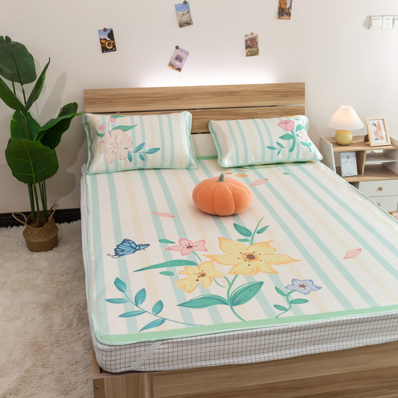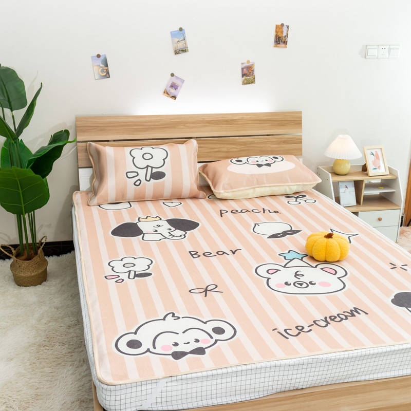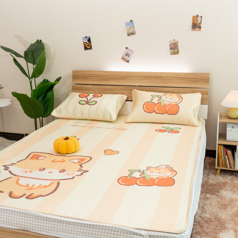 欣宜家纺 2025新款母婴级夏季新款小清新数码印花凉感冰丝席三件套空调席(有质检报告) 樱桃狐狸