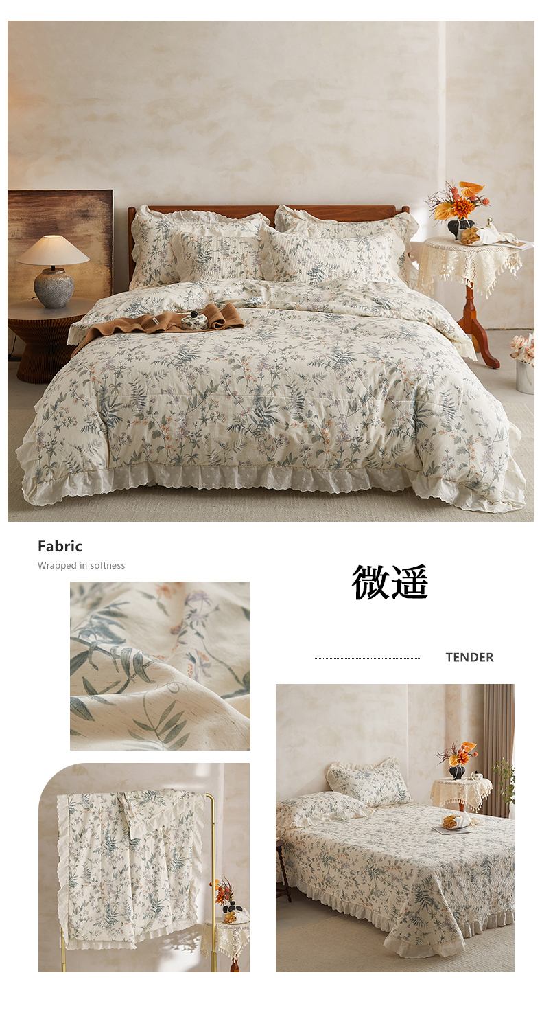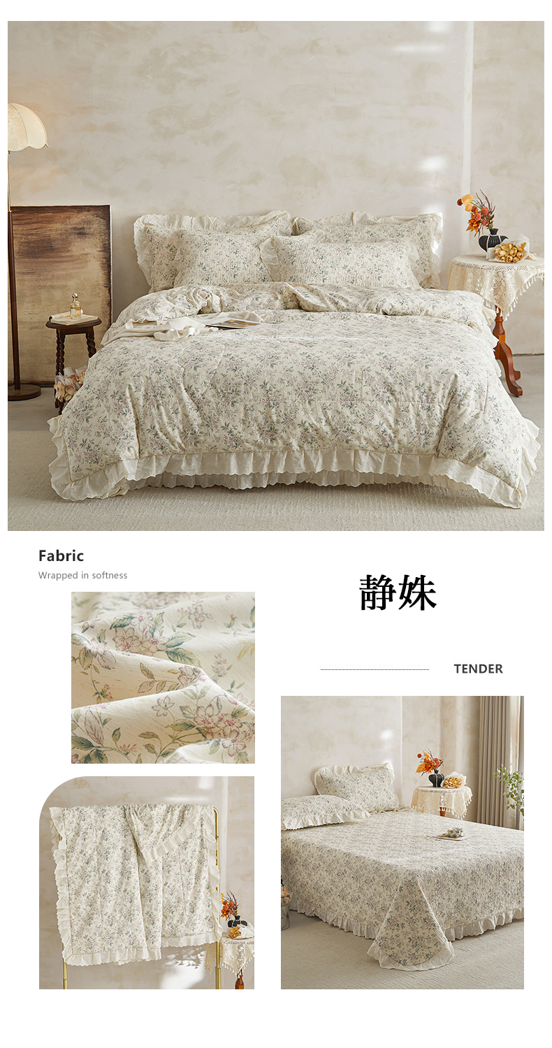 当前位置: 91家纺网 > 商品网购 > 床品套件 > 四件套 > 其它四件套 > 源舜家纺 2026新款全棉镂空花边天丝棉麻床盖款四件套 组合