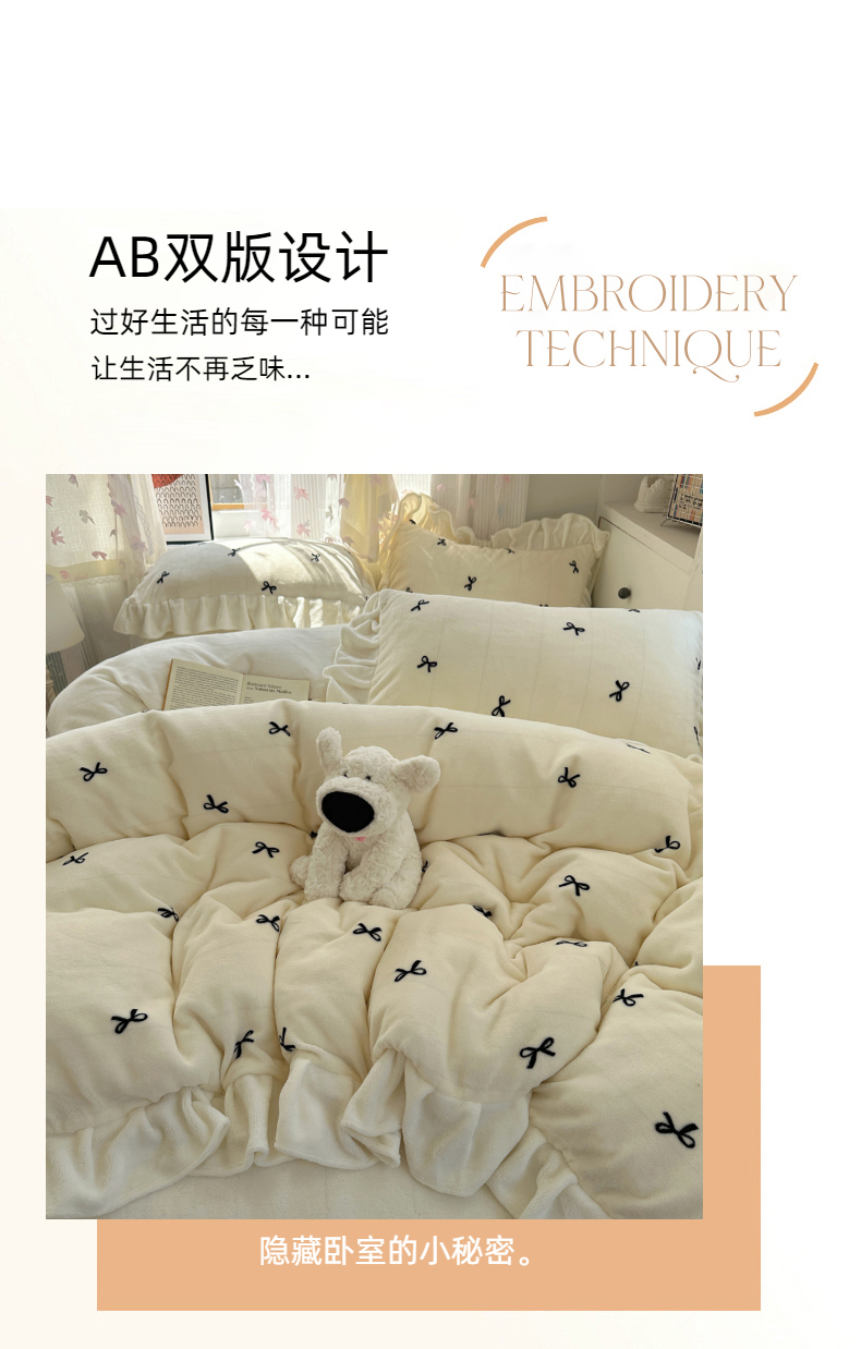 当前位置: 91家纺网 > 商品网购 > 床品套件 > 四件套 > 牛奶绒四件套 > 欣宜家纺 2025新款韩版蝴蝶结花边款牛奶绒四件套 蝴蝶结-浅粉
